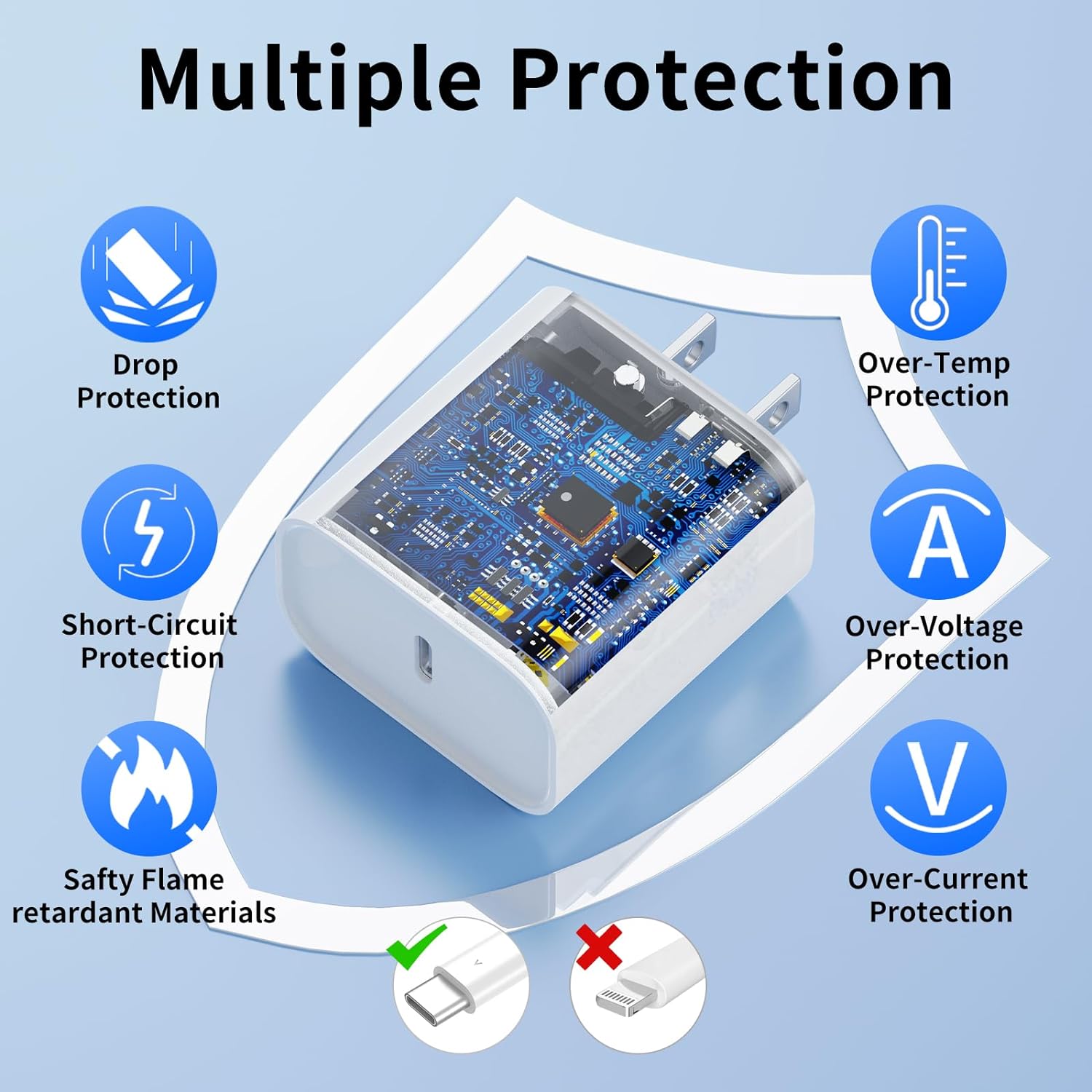 Safe and Reliable: ETL, FCC, CE, ROHS certified, our fast charging iPhone 15 USB C charger prioritizes safety with its comprehensive protection system, protecting against overvoltage, overcharging and overheating. Equipped with advanced smart chips, it intelligently adjusts the current to meet the needs of your device, ensuring a fast and safe charging process for your iPhone15/iPad Pro.
