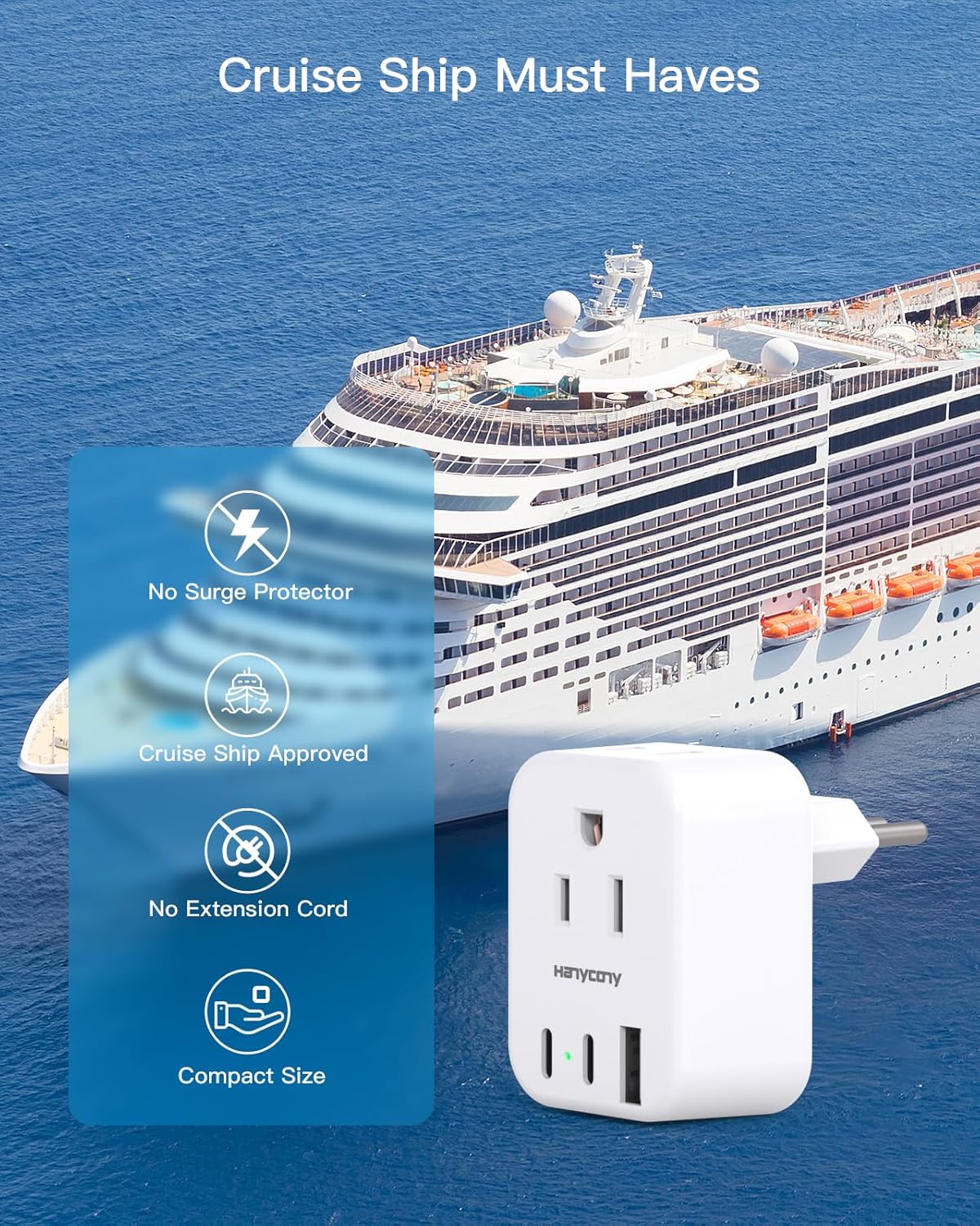 【Italy Travel Essentials: Lightweight and Compact】- This Italy adapter plug is easy to carry and use. The indicator can inform you that the power of this European travel plug adapter is on/off. There is no need to carry an extra adapter and for your travels, you can save space in your suitcase. The travel adapter WITHOUT surge protection, it is an absolute must have accessories for travel and cruises.