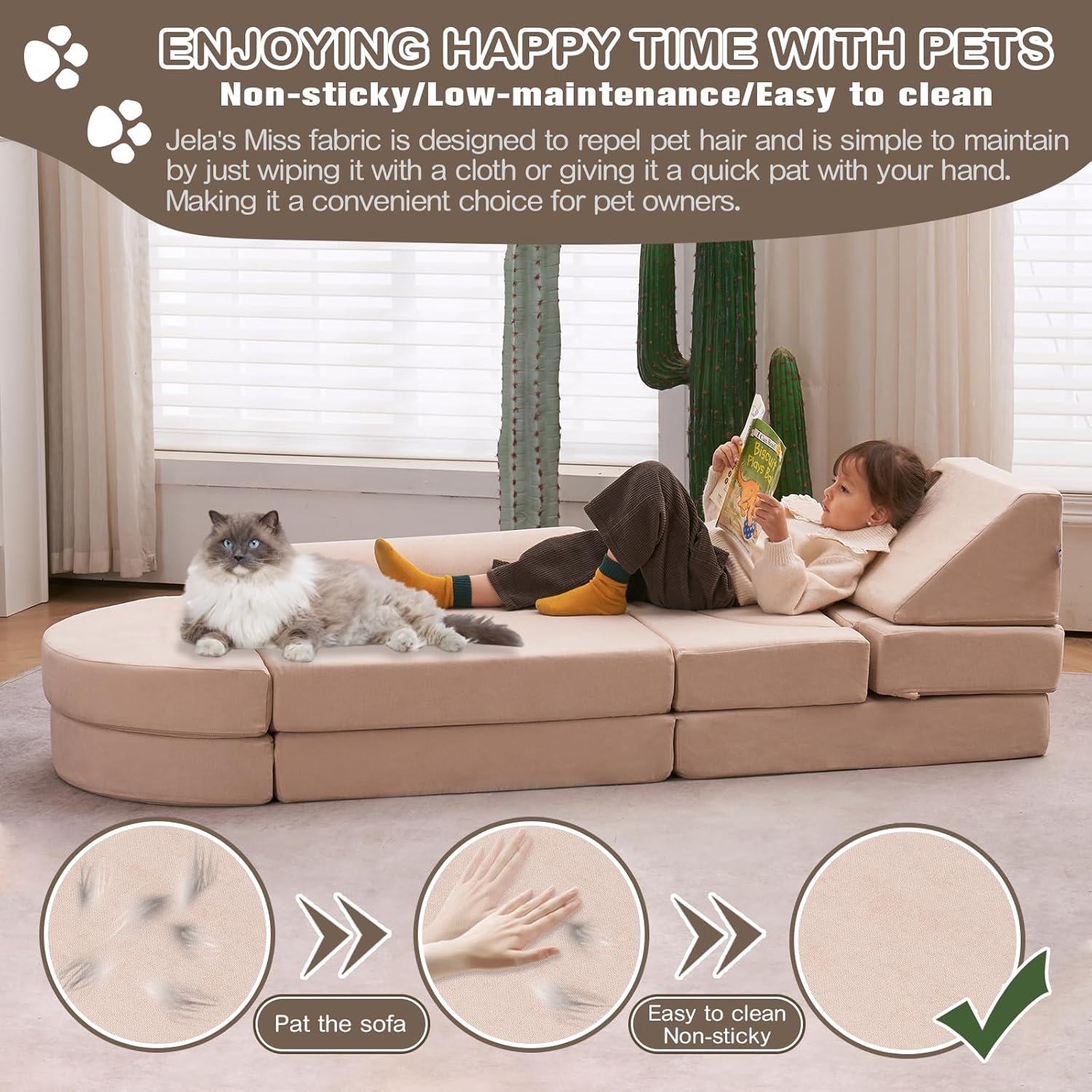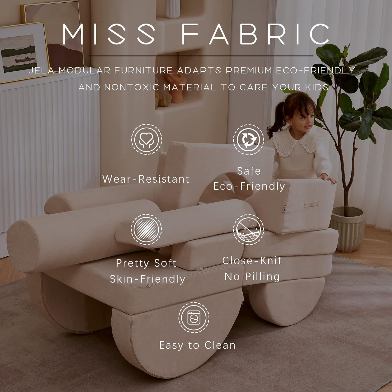Selected Material Miss Fabric: Jela Modular Furniture Adapts Ecological and non -toxic material Premium to take care of their children's health with a gentle sense of touch. The entire product has been approved certipur-US that prohibits any use of CFCs, or any harmful element through all manufacturing. The entire product uses the luxury Miss fabric to make you feel unique and excellent texture.