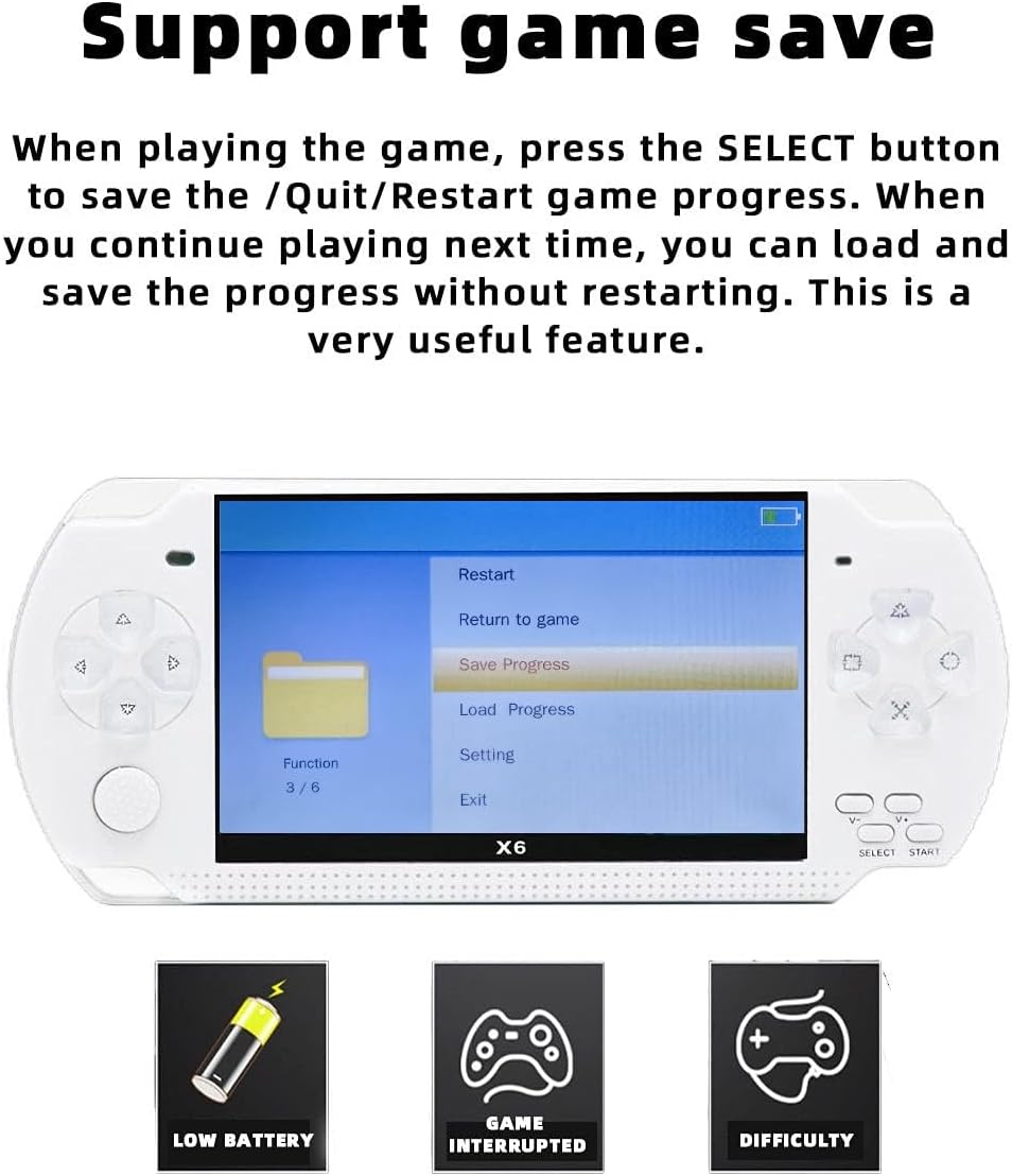 Support game archive. When playing a game, what should the user do if a situation such as low battery, something to quit, the game is too difficult to beat, etc. occurs? You can press the “SELECT” button to save, exit or restart the game progress. When you continue playing the game next time, you can load the saved progress to start the game without restarting. This is a very useful function.
