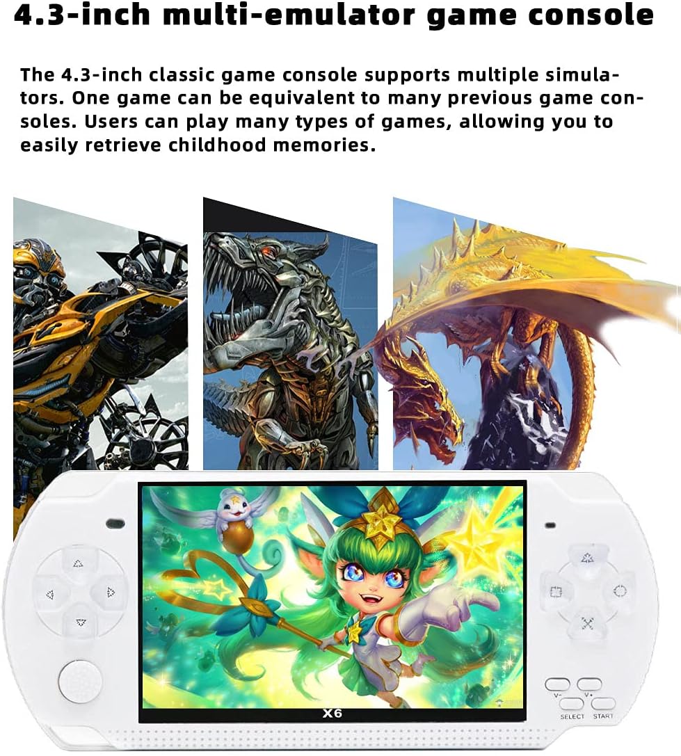 ※4.3-inch classic game console※. Support multiple emulators, one game can be equivalent to many previous game consoles, users can play many kinds of games. The game allows you to easily recall your childhood memories. It is very suitable for travel, indoor, outdoor, leisure use, and also suitable as a gift.