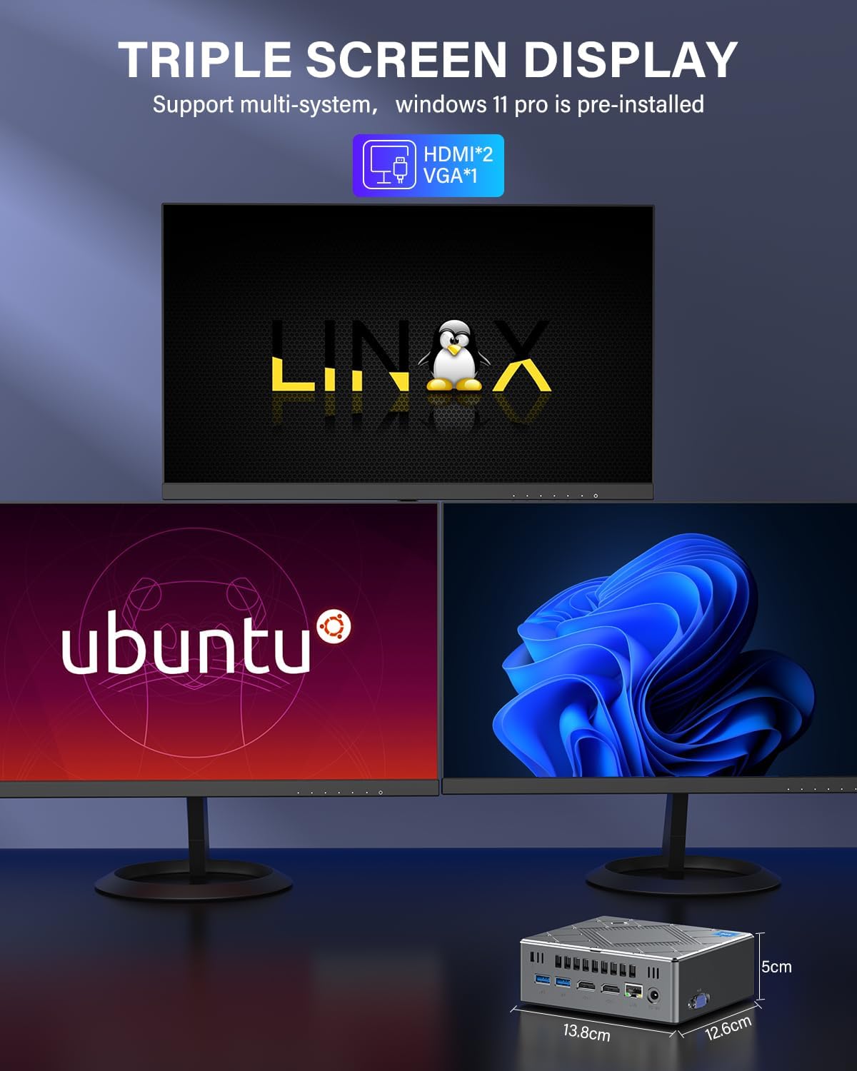 ▶【Excellent Graphics & 4K TRIPLE Display】KAMRUI mini PC comes with UHD Graphics GPU, supports HD (4096 x 2160), 60GHz 4K TRIPLE display (2 HDMI + 1 VGA). Connect the microcomputer to a projector as a home theater, enjoy a variety of entertainment. This mini PC also supports large billboards, displays, kiosks, digital signage, and other commercial uses!
