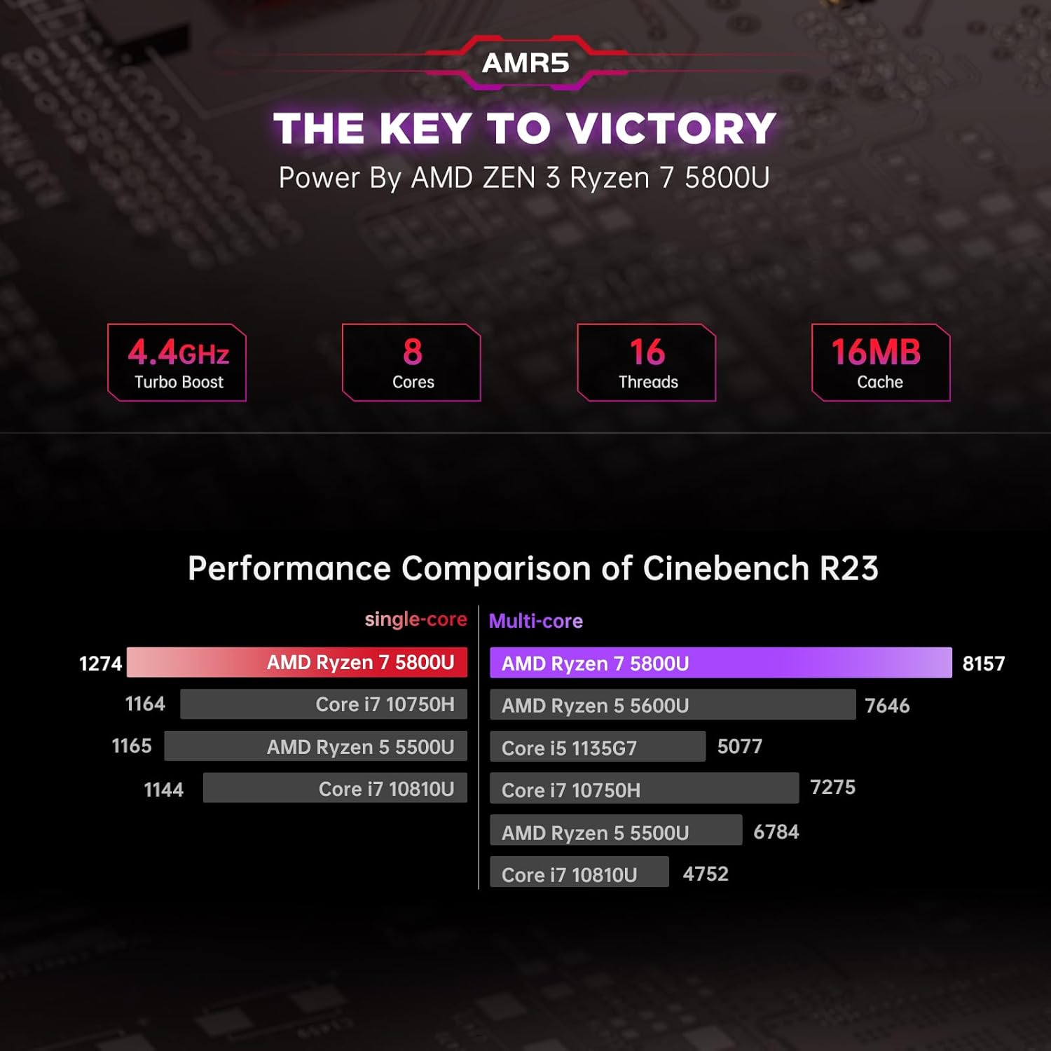 【Powerful and Cost-effective Option】KAMRUI AM06PRO Mini PC powered by AMD Ryzen 7 5800U 8 cores and 16 threads processor with base frequency of 1.9GHz and up to 4.4GHz in burst. The advantages of 7nm technology achieve the best balance between high performance and low energy efficiency, and it has excellent performance on both single-thread and multi-thread. This Tiny machine can handle all kinds of complex multitasking with ease and capture your heart with its fast responsiveness.
