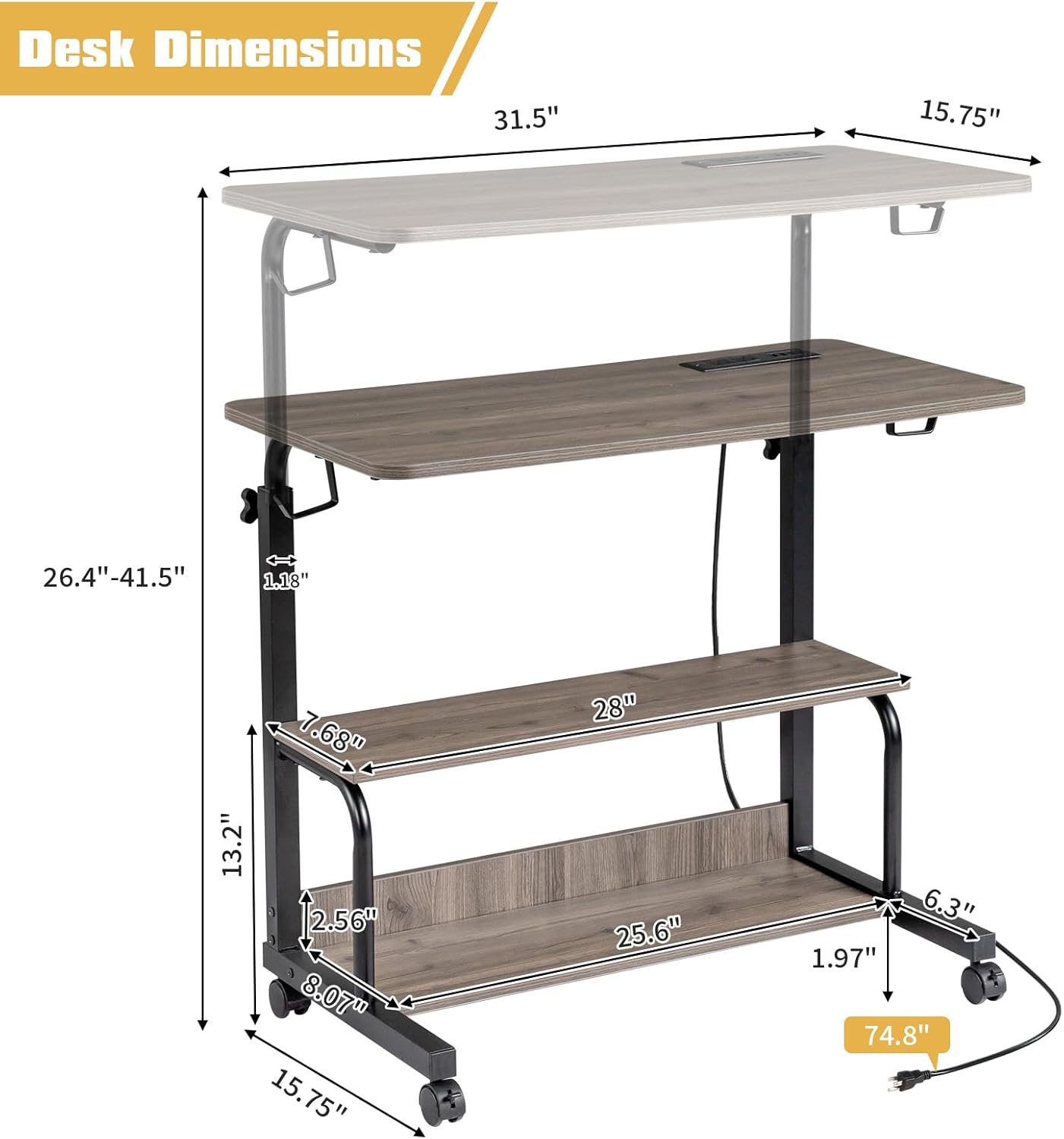 【Easy to assemble】: The adjustable computer desktop has a simple design, and all panel materials are precipitated, so you can easily install it according to the guide. Complete with detailed instructions easy to follow and pieces, accessories and tools labeled, will not have to spend too much Armando. Desktop dimensions: 31.5 “L x 15.75” W x 26.4-41.5 “h.
