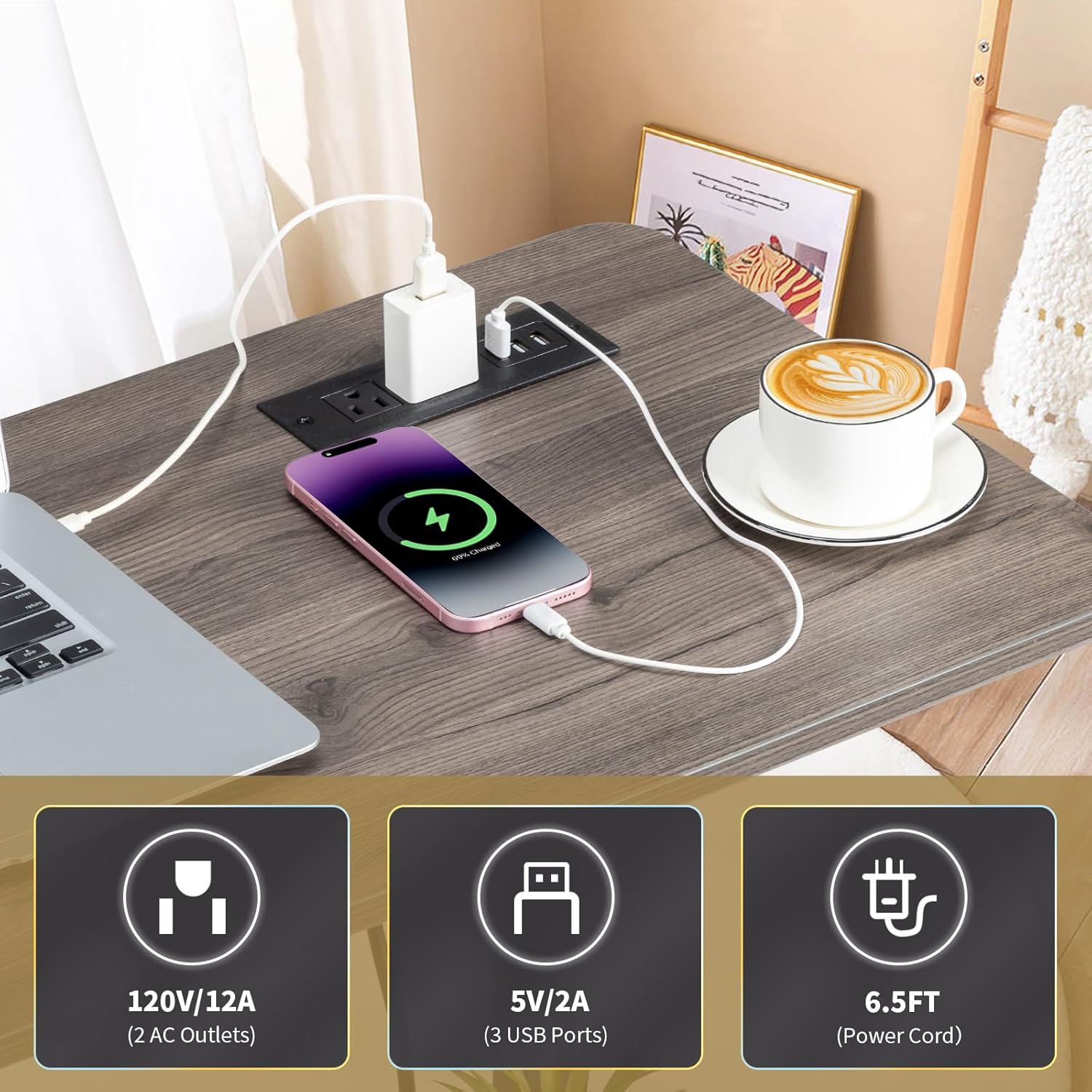 【Desk with electric plugs】-Do you worry the low battery when you use electronic devices for work or entertainment? The lifting stand desk is equipped with 2 CA plugs and 3 USB ports. The food cable of almost 75 “long converts the computer desktop into a mobile power plant to load your mobile phones, laptops, headphones and other electronic devices.