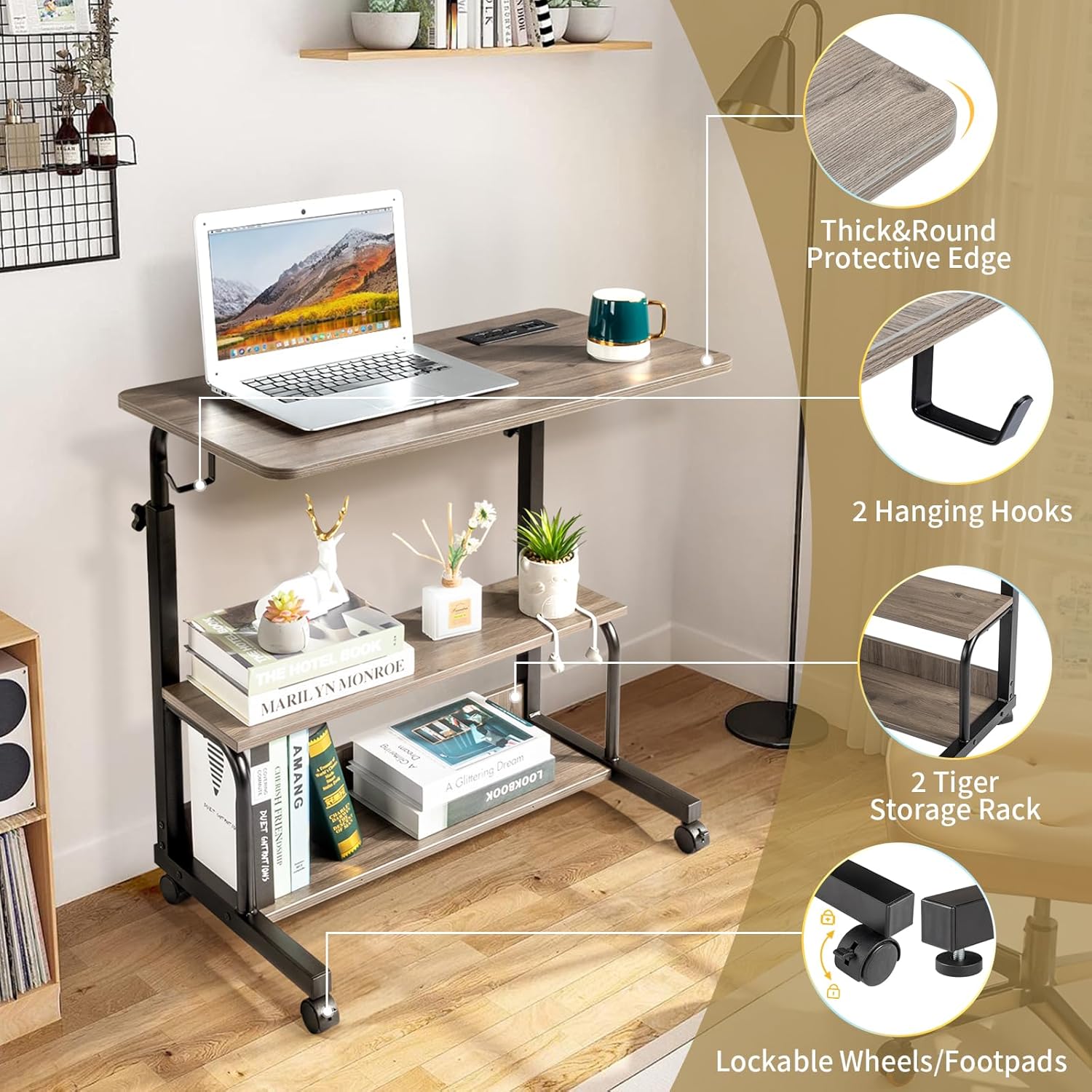 Karl Home 31.5 “Portable rolling desk on wheels, height adjustment …