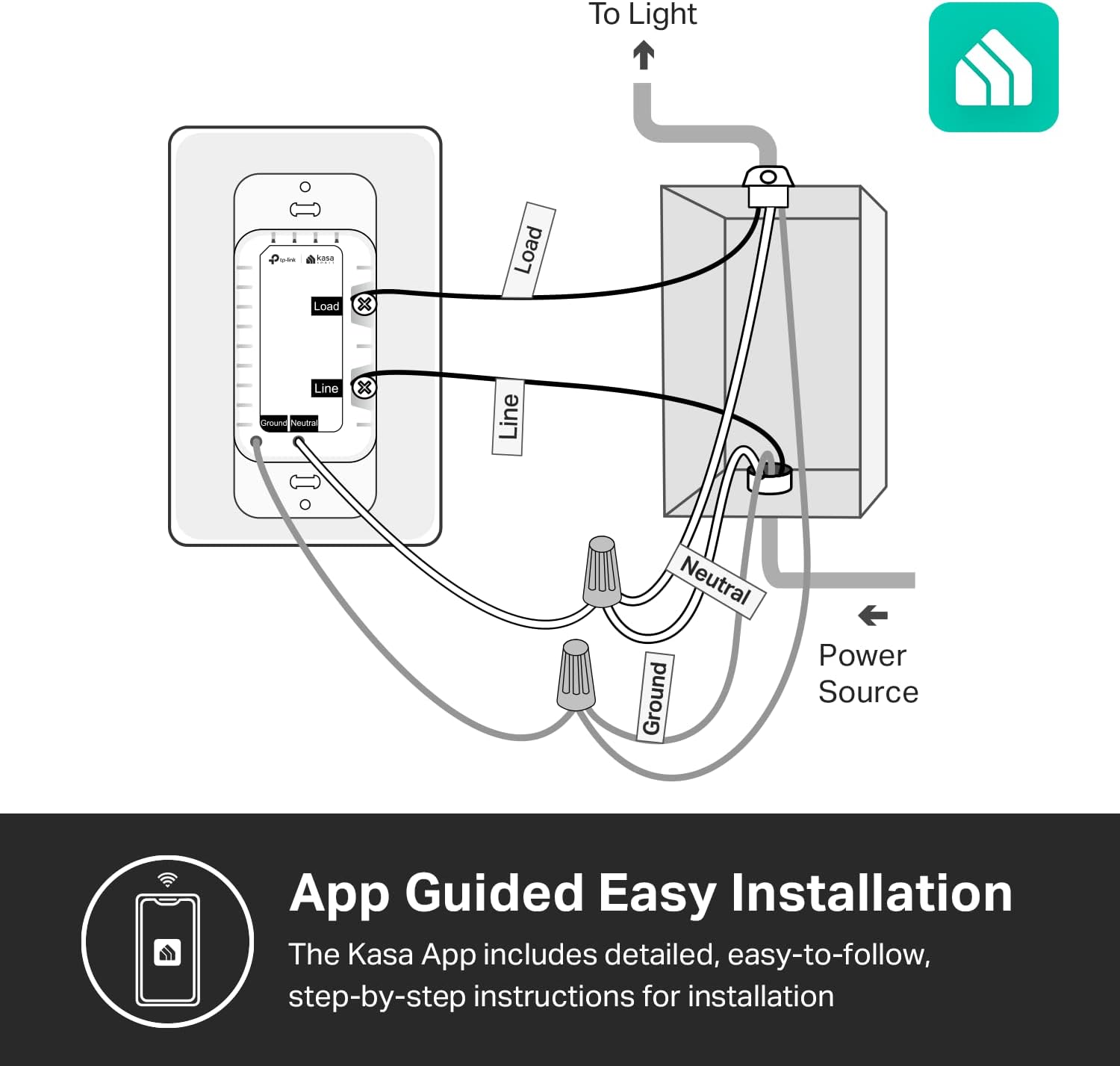 【Easy Guided Installation】A neutral wire and standard-size wall plate are required. No need to understand complex switch wiring or master and auxiliary switch setup. The Kasa app guides you through a simple step-by-step installation. Requires a 2.4GHz Wi-Fi connection