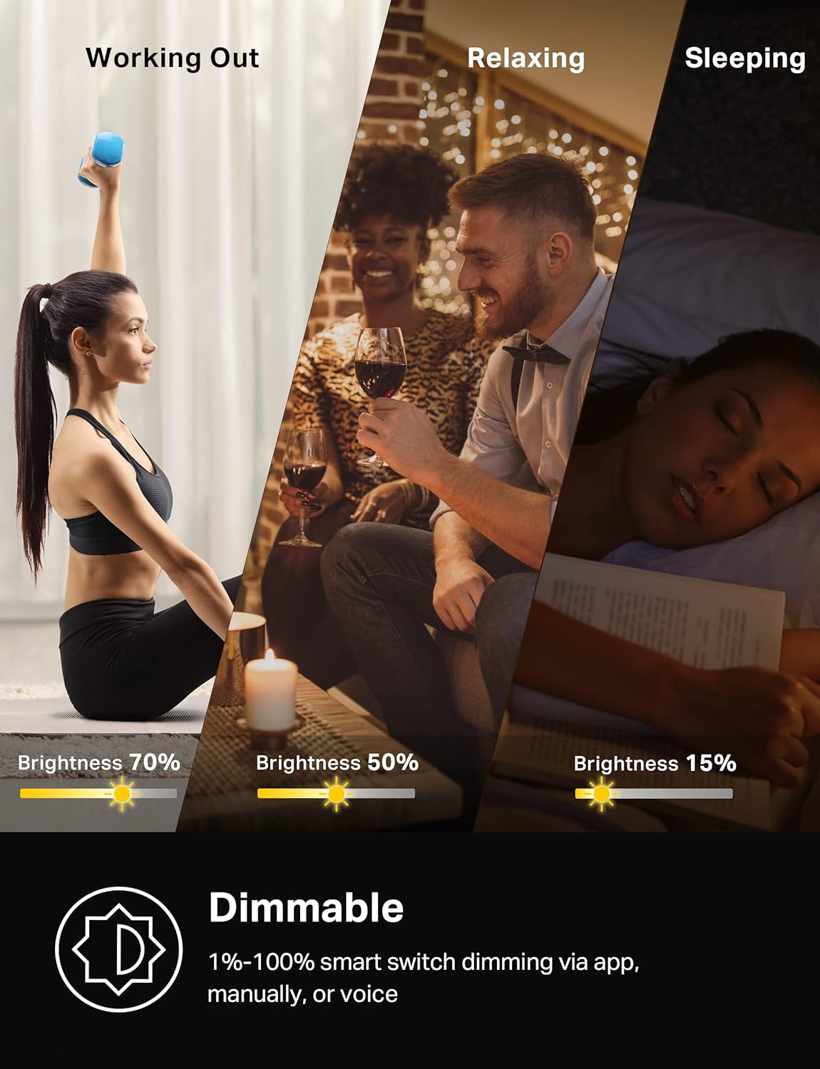【1%-100% DIMMING with PROGRAMMING】Adjust the desired brightness directly from the elegant switch or via the Kasa app. Set light schedules to turn on/off at your desired brightness for nighttime illumination or a gentle wake-up.