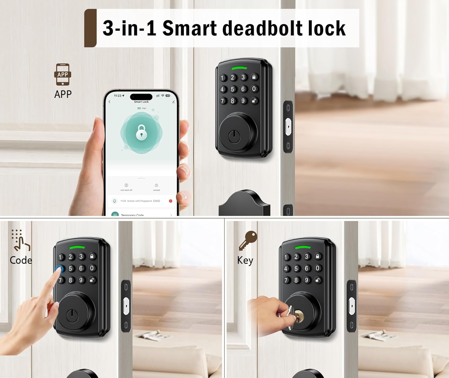 Keyless Entry Door Lock with App Control, 100 Code Fingerprint Reader…