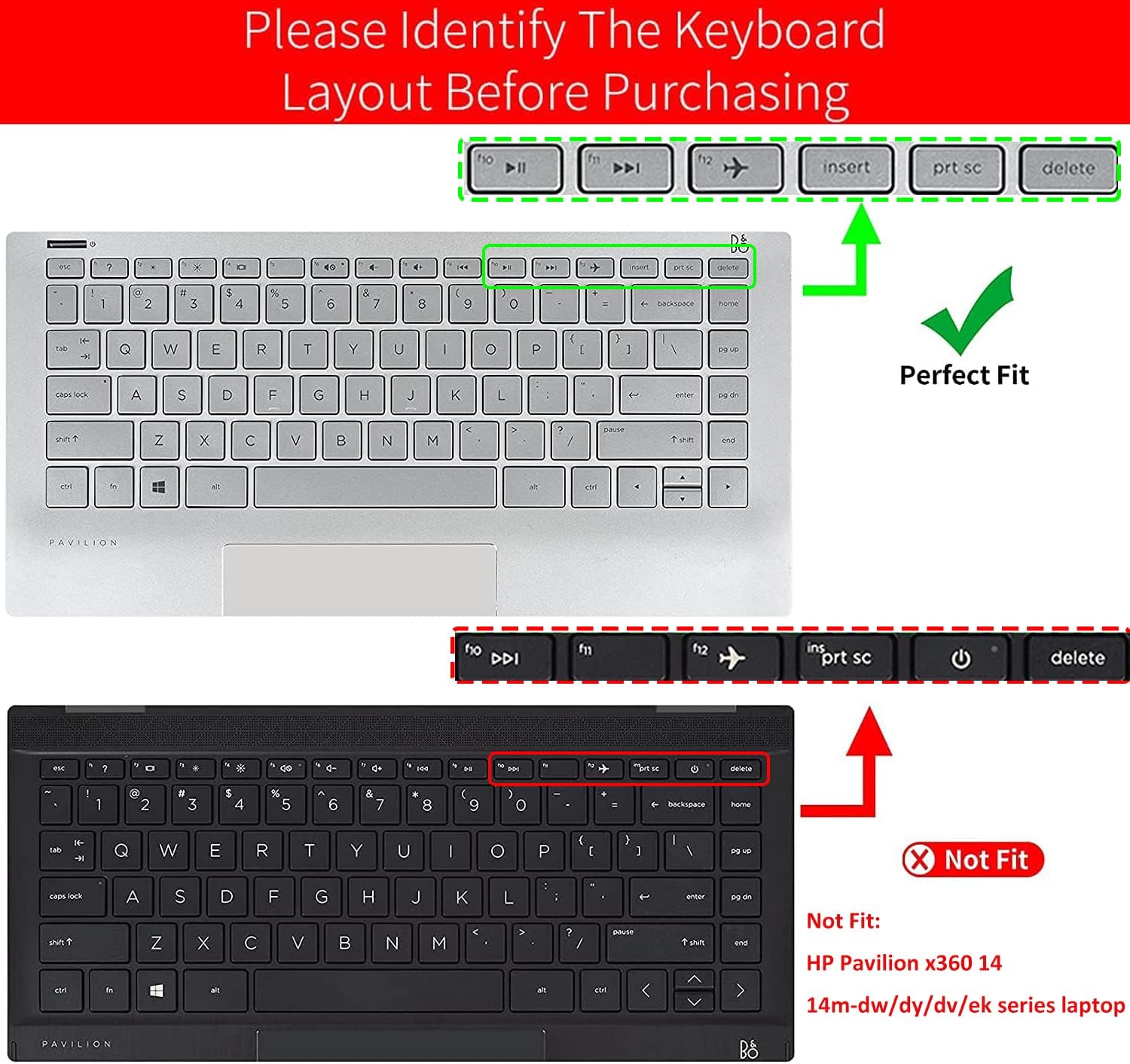 COMPATIBILITY: Keyboard cover is perfect for HP Pavilion x360 2-in-1 14″ Laptop 14M-BA011DX 14M-BA013DX 14M-BA015DX 14M-BX114dx 14M-CD0003DX 14M-BA114DX 14-BF040WM 14-BF050WM 14 -BW 006NR 14 -BW010NR 14- BW065NR 14M-CD0001DX 14M-CD0003DX 14M-CF0020UR 14-CF0014DX 14-CM0010NR 14-DF00118WM HP-DF0023CL 14-DK0002DX 14-DS0003DX 14-dq00 11dx 14 inch Laptop Silicone Keyboard Cover (with SQUARE keyboard).
