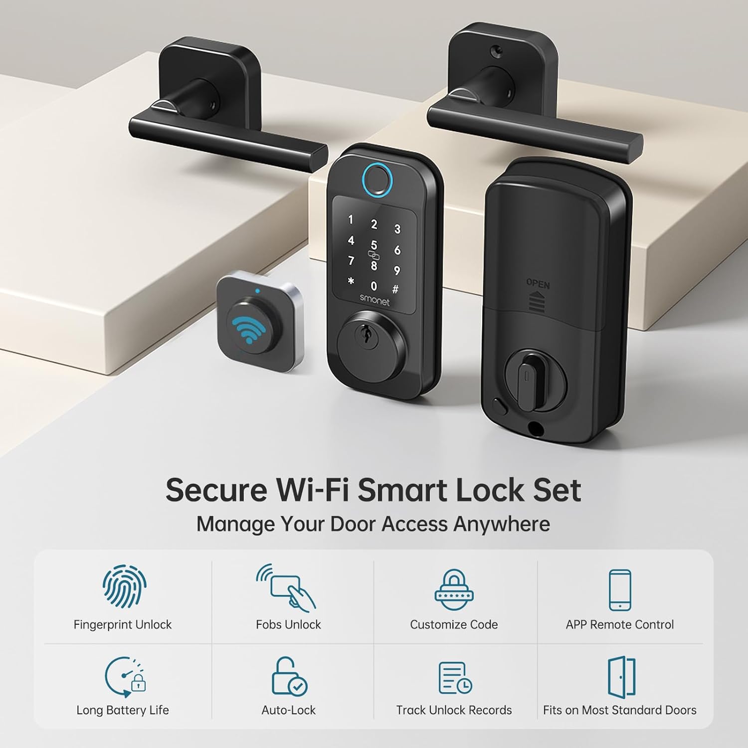 Keyless Door Lock with Handle Set – SMONET WiFi Fingerprint…