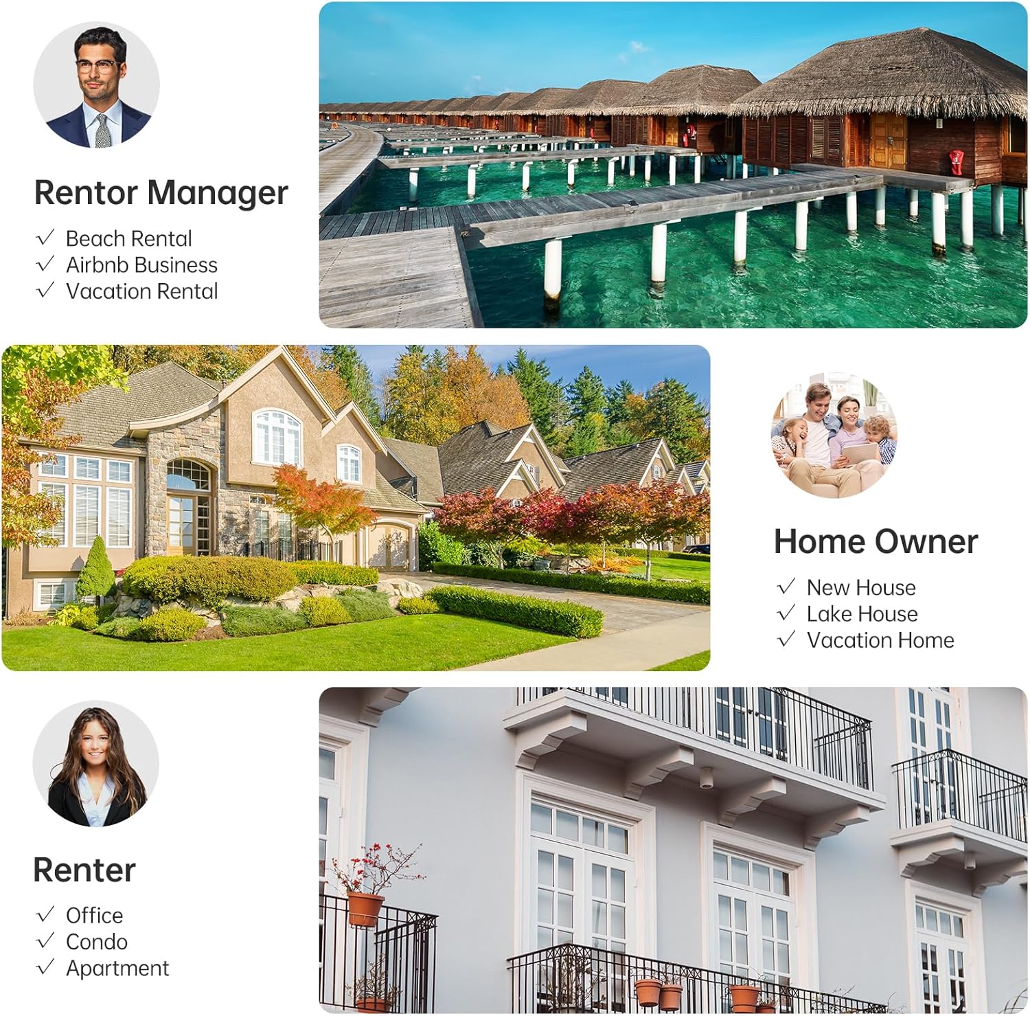 Designed for Rental: Unique, permanent, custom codes of all kinds for your short-term rental guest. By authorizing users, family members can also manage the configured smart lock through their individual app accounts. Ideal for rental, vacation home, beach house.
