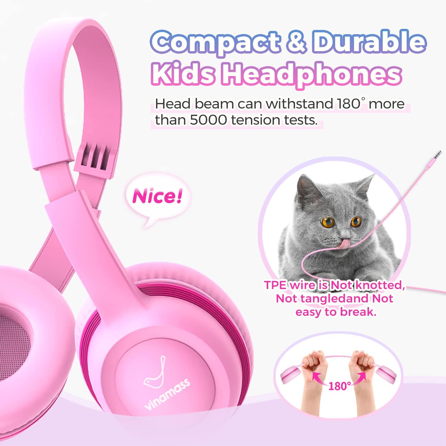 Vinamass A63 children's wired headphones are made to accompany children during their growth, it is a good companion that meets the diversified needs of children. Whatever the use for studying, playing, immersing and enjoying music, A63 headphones are a tool to help children improve attention, stimulate hands-on ability, cultivate music appreciation, improve language skills, enhance imagination, etc. As far as parents are concerned. A63 headphones are wonderful gifts for children over 3 years old, no matter Christmas, Thanksgiving, New Year, back to school, etc.