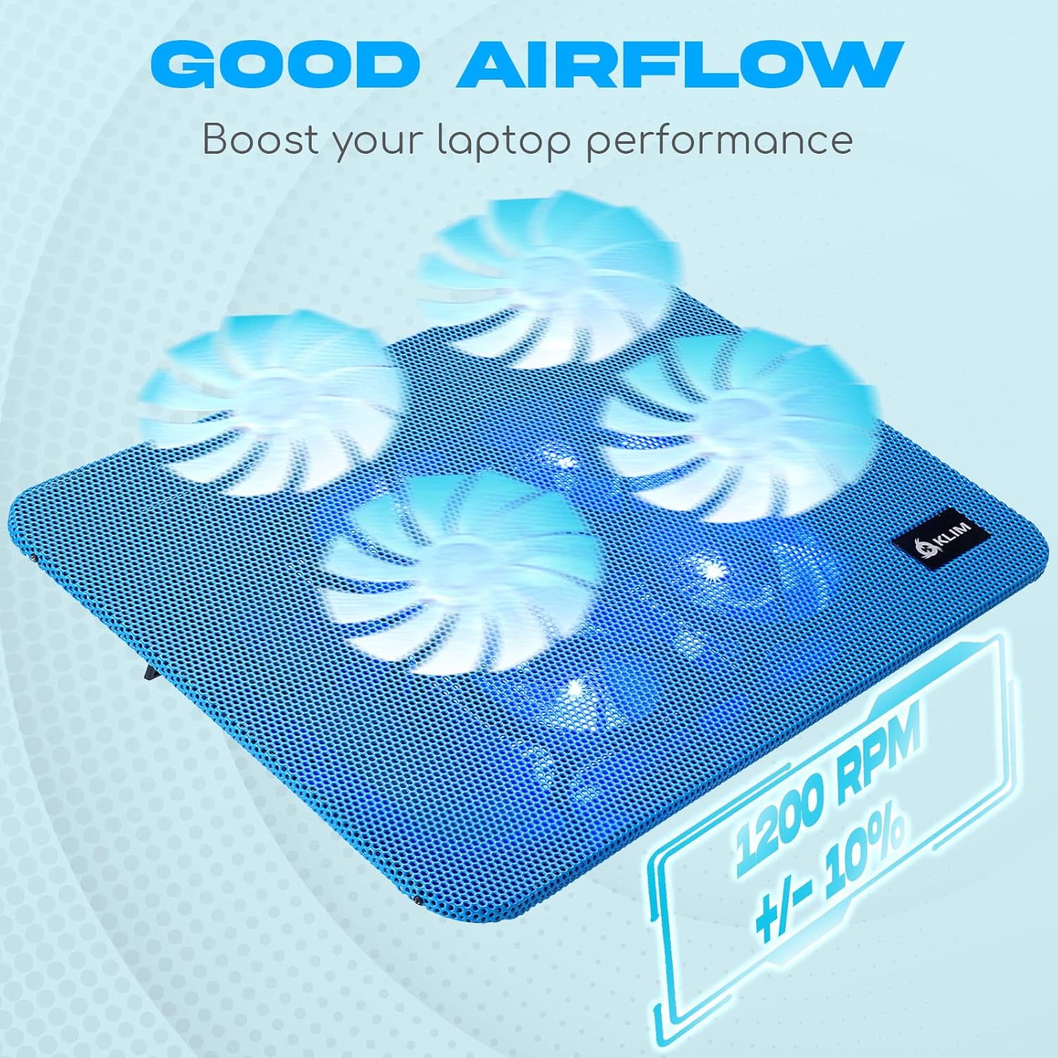 ✅ FOUR FANS AT 1900 RPM. New laptops with inadequate cooling degrade much faster. Old laptops start to run much slower and may even stop working altogether. On many models, simply lifting the laptop off the desk and having some airflow is enough to make a difference. Note: To keep its noise levels very low, it is not as powerful as other larger models. Please keep this in mind. If you have serious overheating problems, we recommend the KLIM Wind or the KLIM Cyclone.