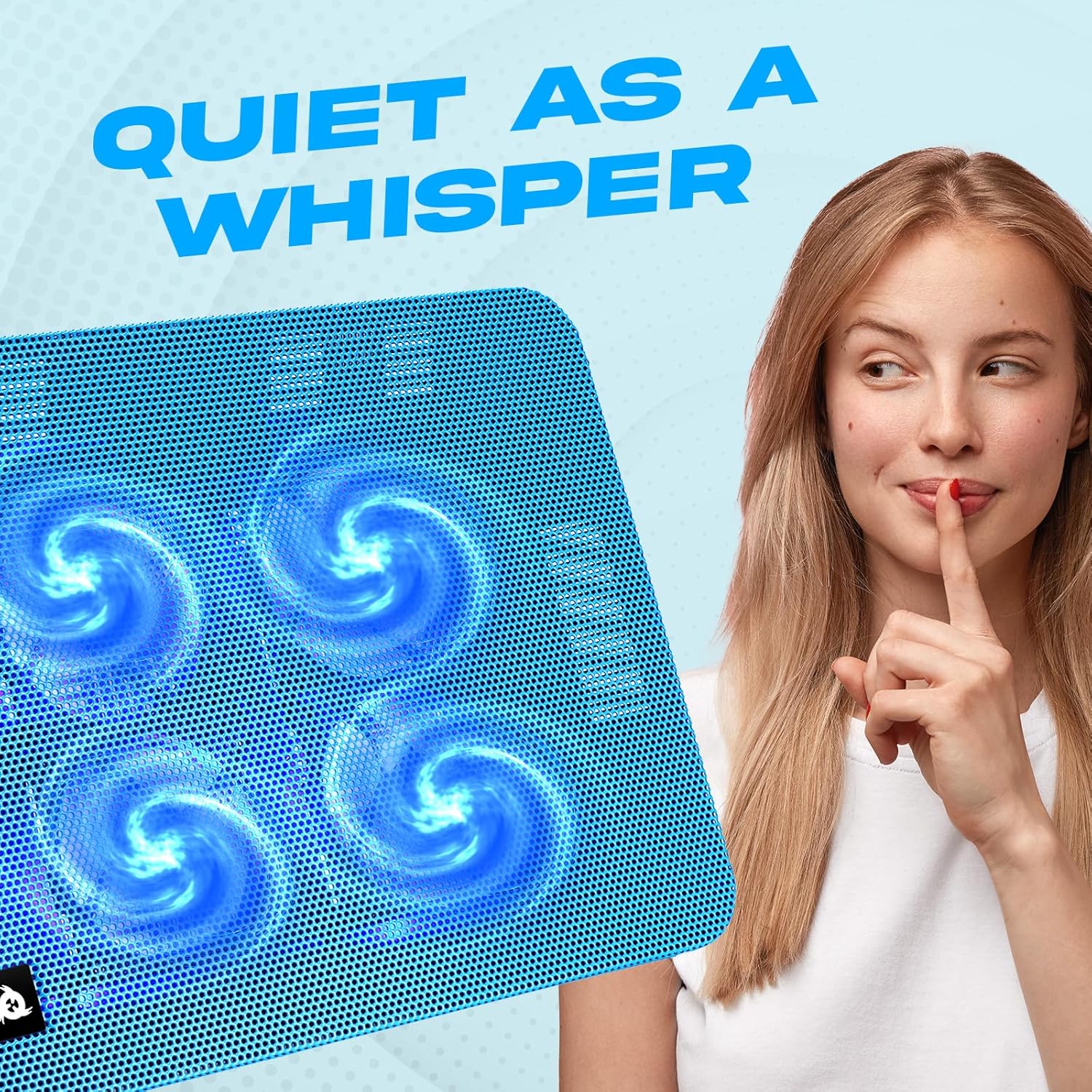 ✅ SILENT AND STYLISH. We've designed this laptop cooler to be as quiet as possible, so it won't interrupt your concentration or disturb those around you while you work from home or watch a TV show on your laptop.