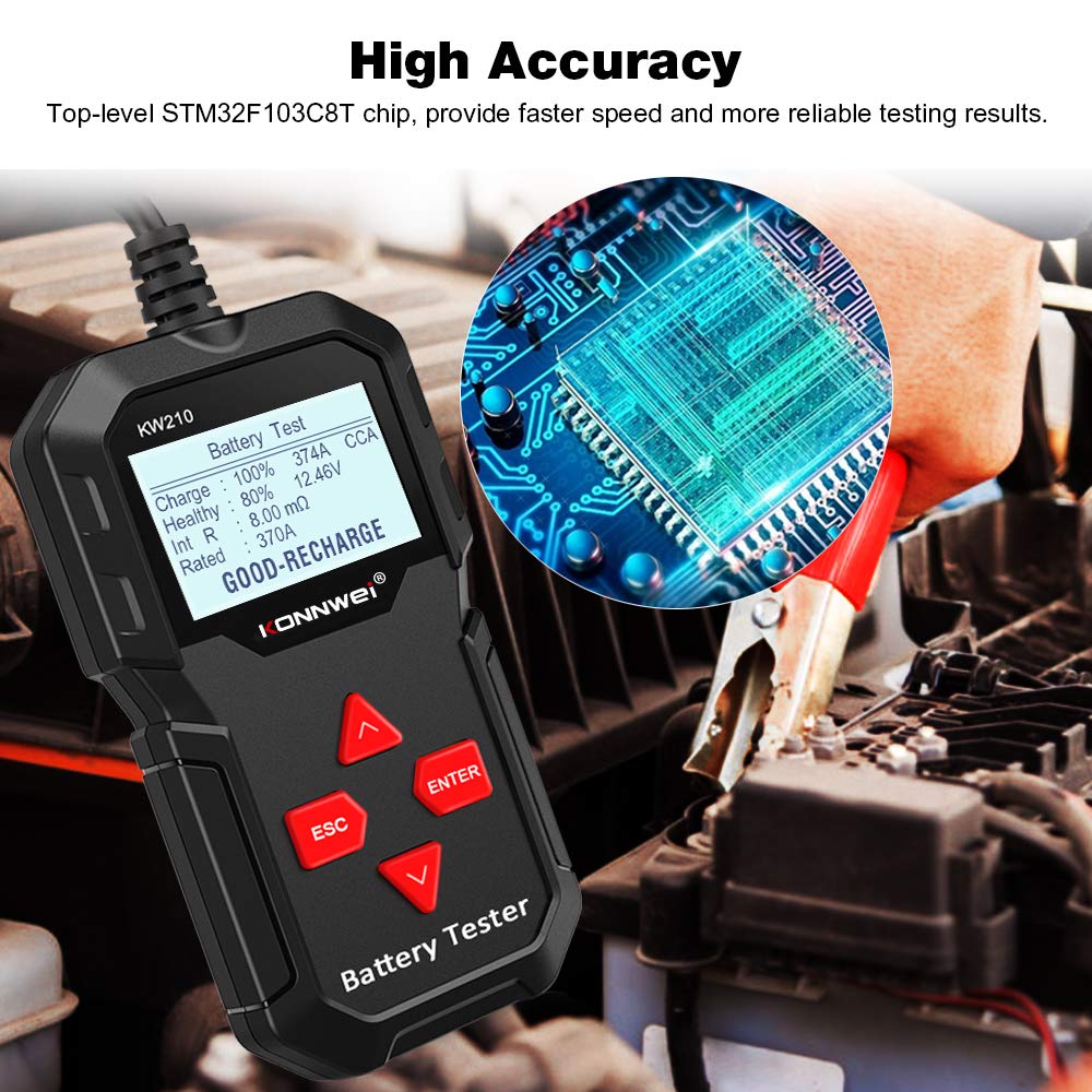 With the best STM-32 main chip, the testing speed of KONNWEI KW210 12V automotive battery analyzer is much faster than others and also provides more accurate and reliable results.