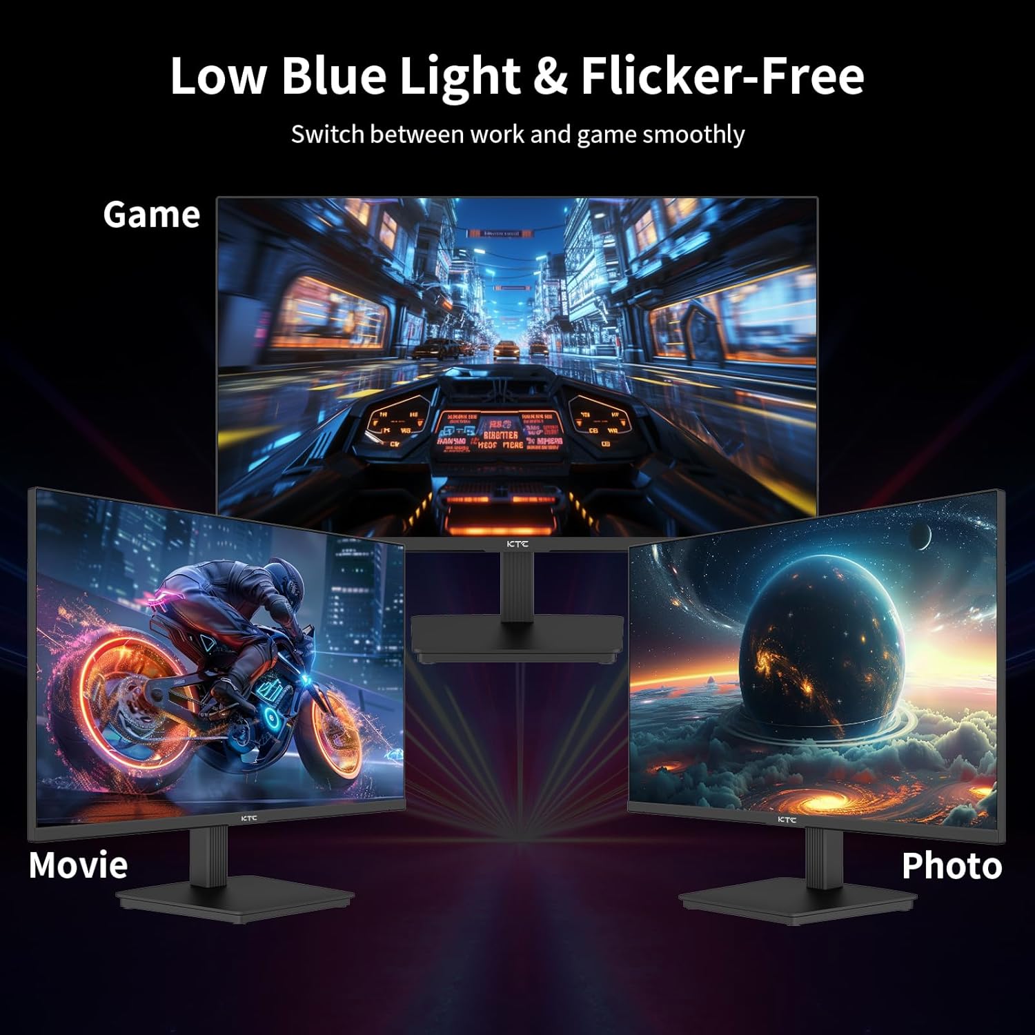 【Easily Switch Between Work and Entertainment】KTC 24 inch monitor has 100Hz refresh rate, FreeSync/G-Sync compatible, which eliminates tearing and ghosting in fast-paced actions, bringing smooth office and gaming experience.
