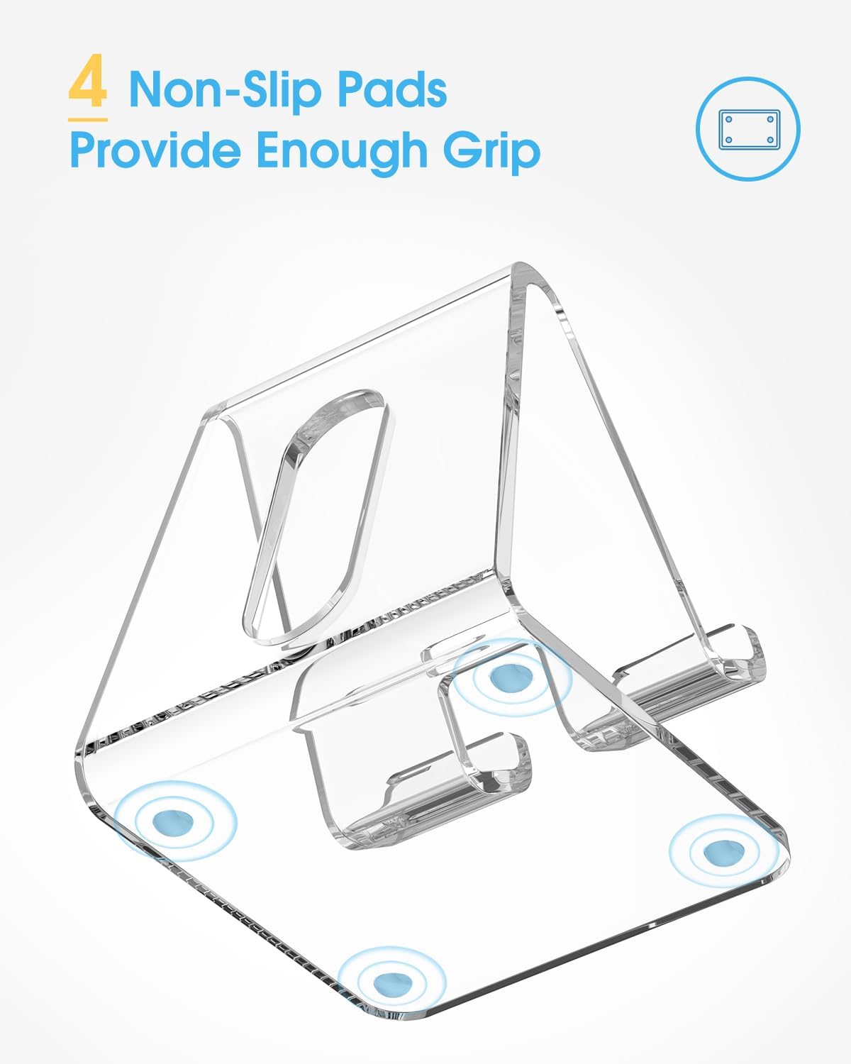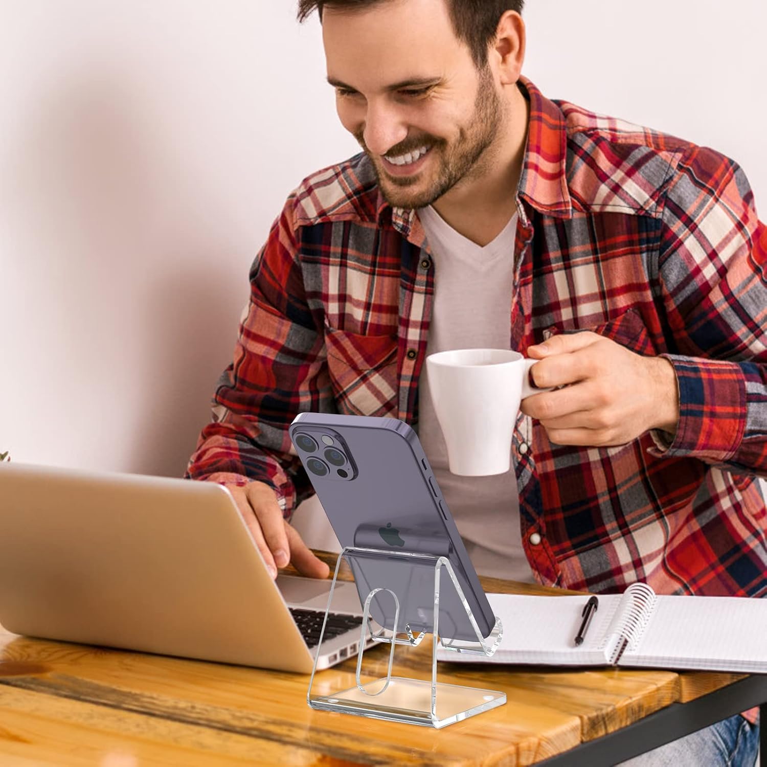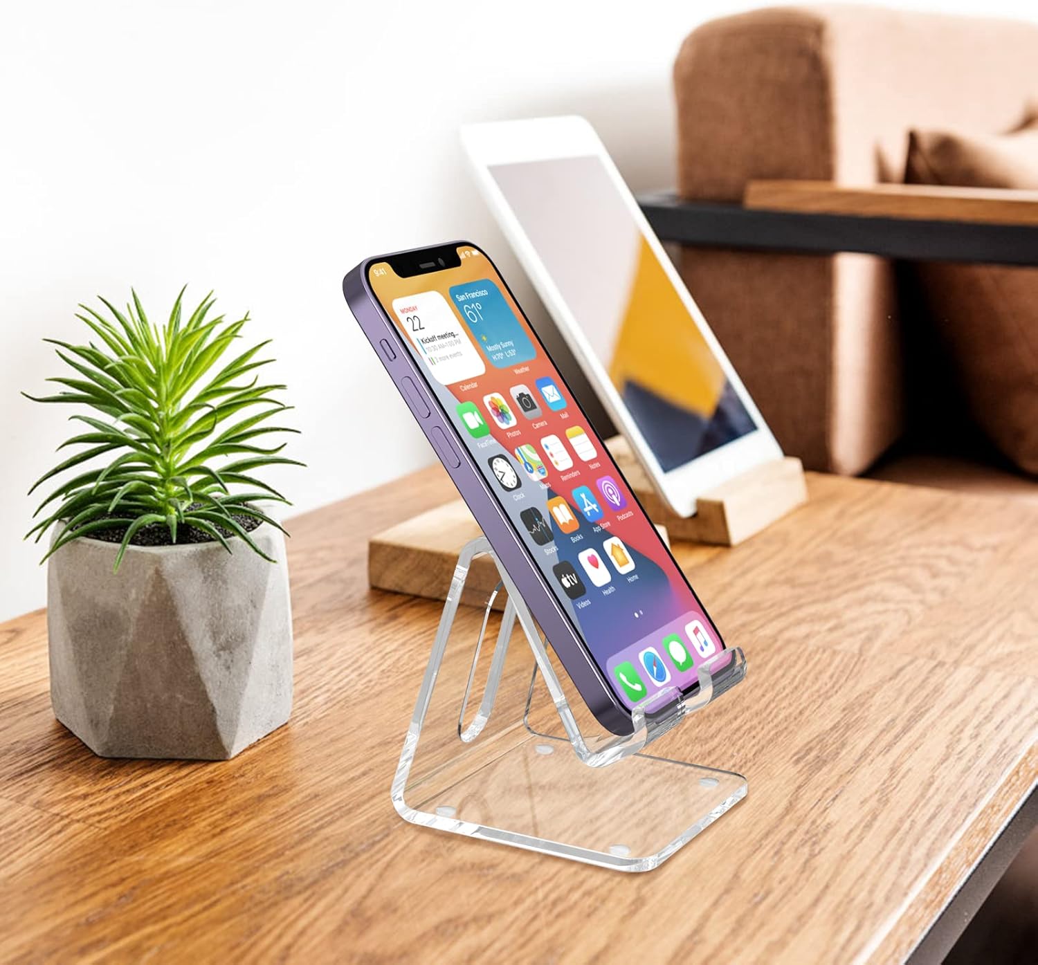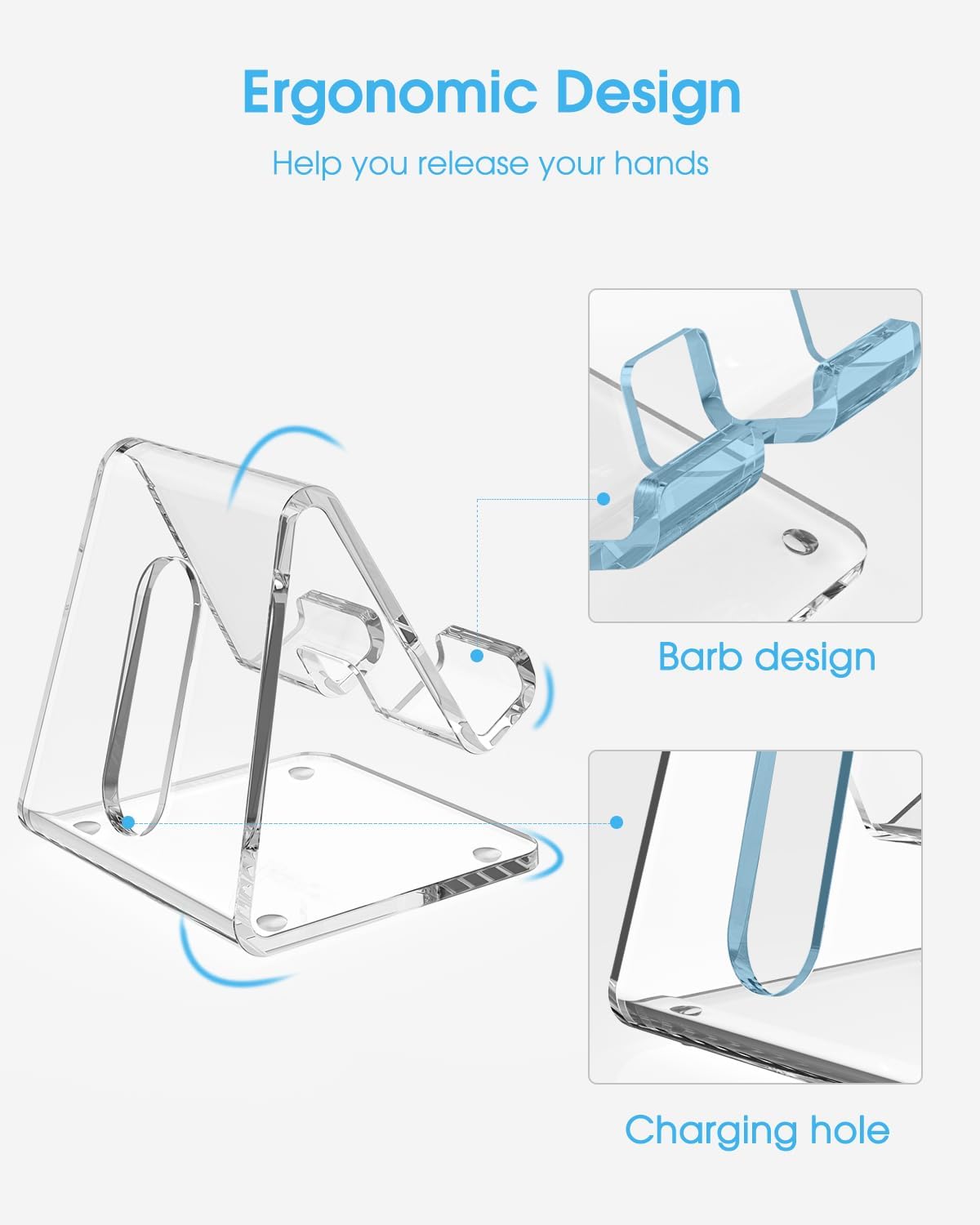 Superior Transparent Material: This transparent phone holder is made of high quality acrylic, transparent and durable. The acrylic edges of the phone holder have no sharp burrs due to manufacturing progress and are comfortable to touch. Beautiful appearance creates a stylish office space for you!