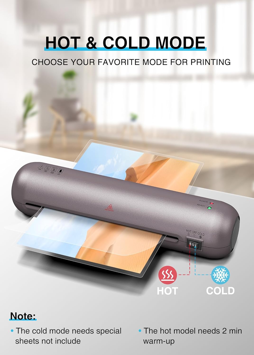 The SL280 laminator offers two modes of lamination: hot and cold. It can meet your different needs, you can choose the best method for your needs. (Note: Cold mode requires special sheets not included)