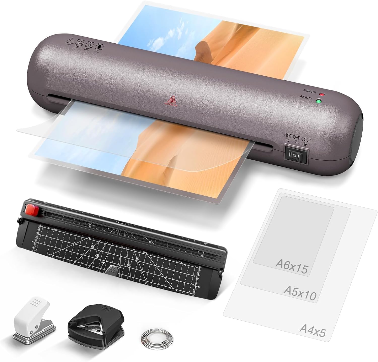 ➤【 – 】Full set includes 1 laminator, 1 paper cutter, 1 corner rounder, 30 laminating bags (A4*5/A5*10/A6*15), 1 iron ring. , Hole Punch*1, User Manual*1, to meet your needs. Our personal laminator has a wide range of applications suitable for home, office and school. It is often used to preserve important documents and precious photographs.