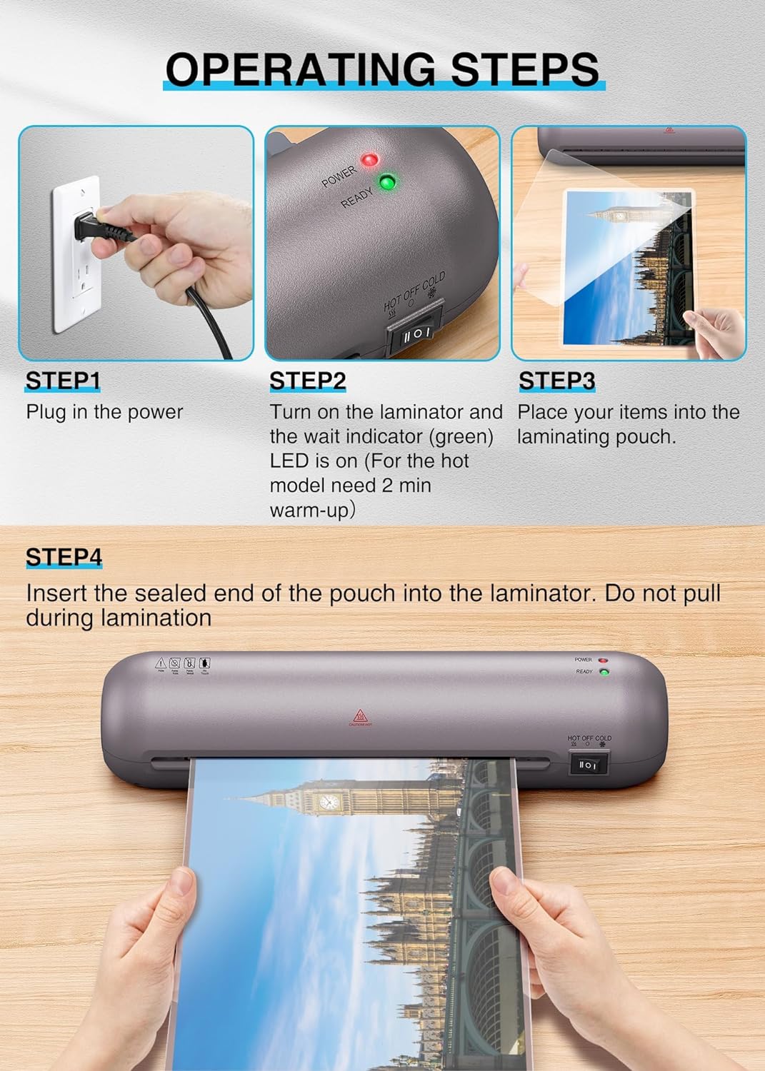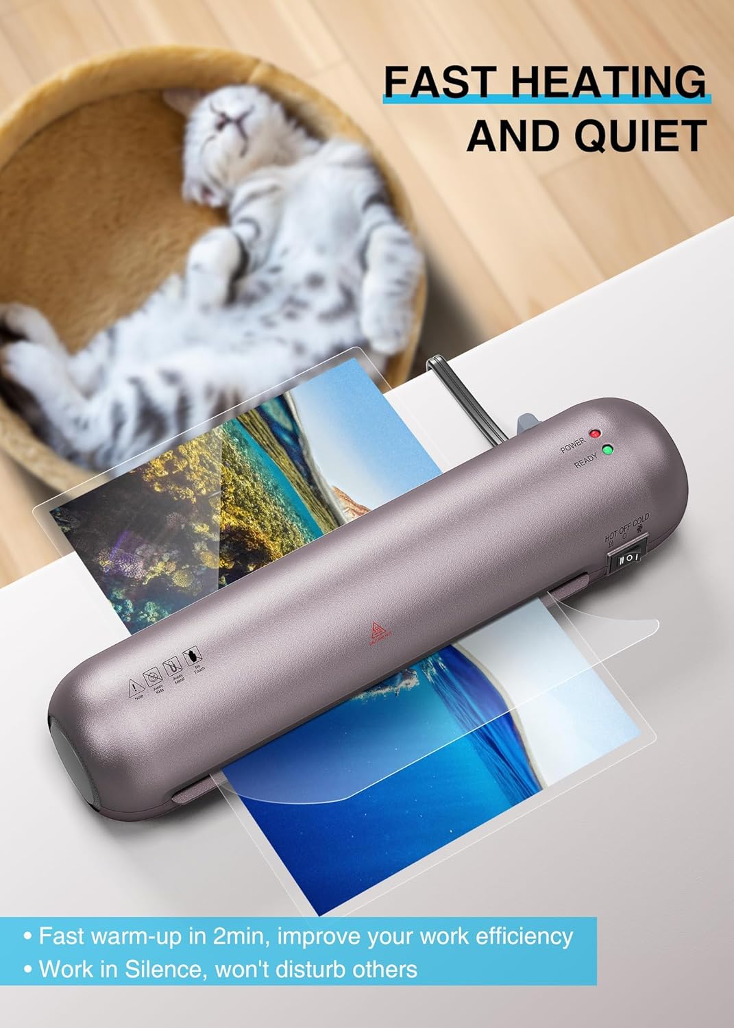 ➤【 – & 】The SL280 laminator heats up in 2 minutes, saving you waiting time and improving your work efficiency. Use leading technology to solve noise interference, will not disturb others, and create high-quality, wrinkle-free products.