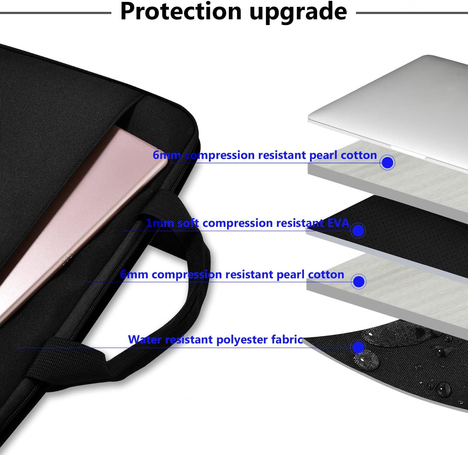 ★ 5-layer protection design with water-resistant polyester fiber and foam padding layer and fluffy fleece lining to protect your device against dust, dirt, bumps and accidental scratches.
