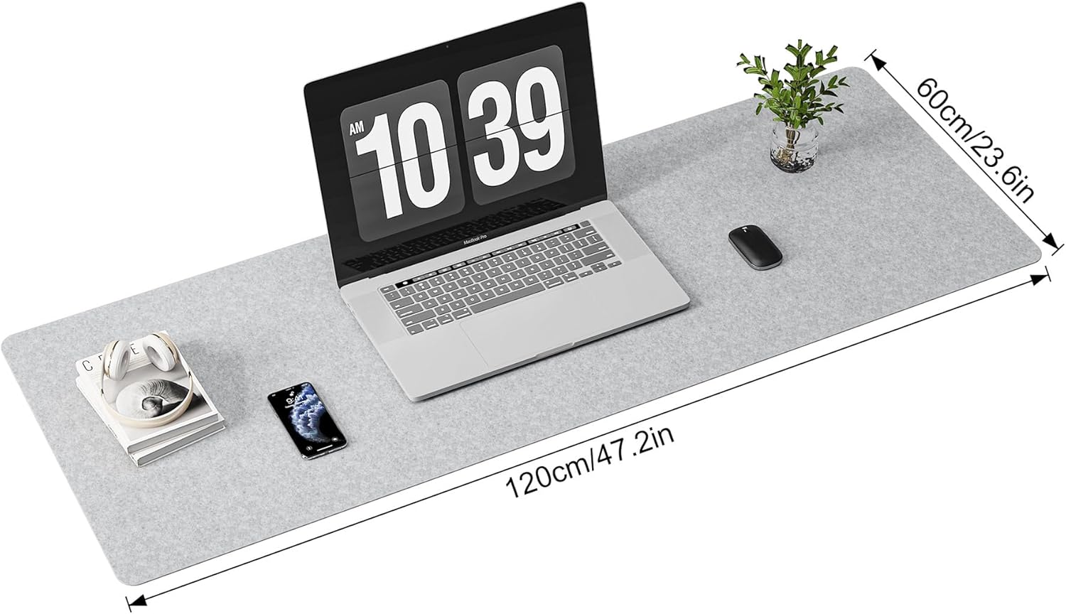 1. Felt Desk Mat Material: Felt Cloth, 2. Color: Light Gray 3. Dimension: 47.2″x23.6″x0.12″ (LXWXH 1200*600*3mm) 4. Weight: 300g 5. Package Information: Gift Box – Made of premium felt fabric, this large mouse pad is soft and comfortable – Easy. to store, roll up this keyboard pad and this ergonomic design will save you a lot of space – Elegant color and appearance.