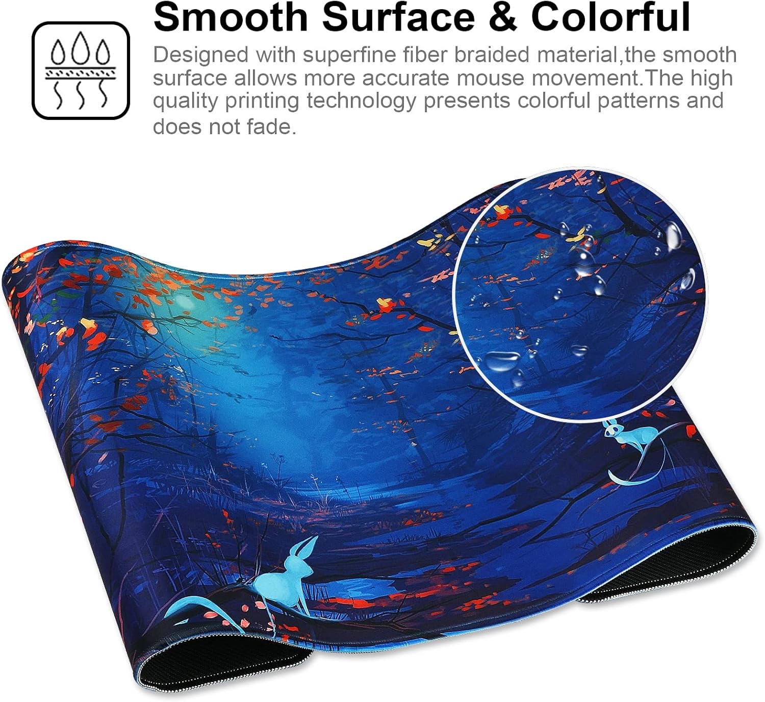 Smooth Surface: Covered by comfortable fabric, the mouse pad has a soft and smooth surface, helps you track the mouse quickly and accurately, maximally improves your gaming/working experience.