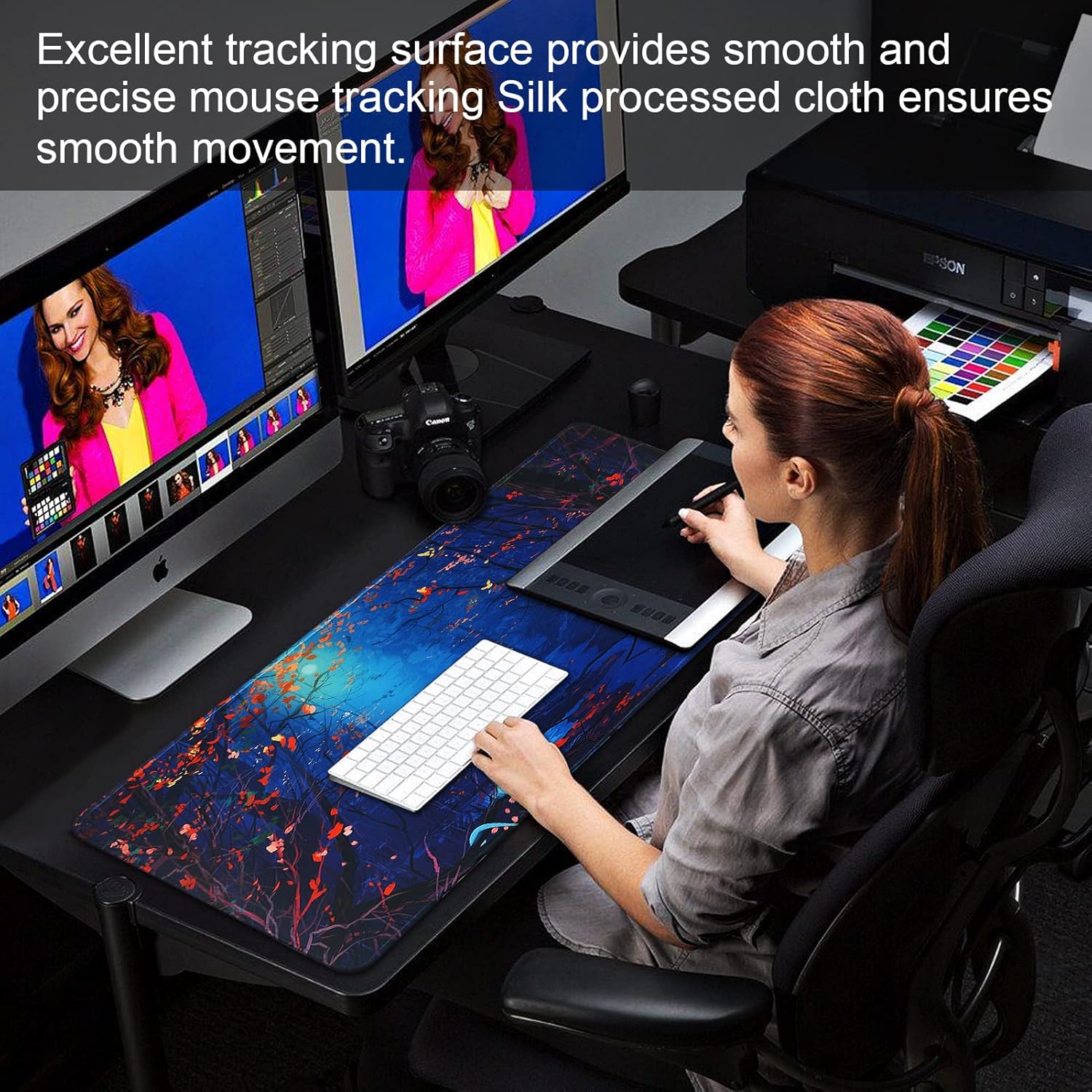 SMOOTH SURFACE Covered with a comfortable fabric, the mouse pad has a soft and smooth surface that helps with mouse control as it is less resistant than other products. Movement is now controlled, silky and effortless.
