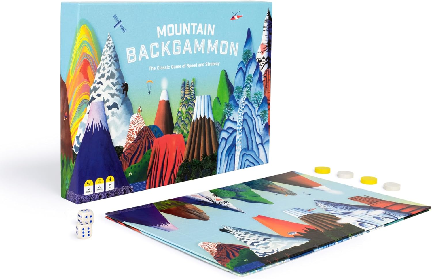 PLAY AND LEARN: Each point on the backgammon board is represented by 24 amazing mountains from around the world (there's even one on Mars!). Enjoy the detailed illustrations, including little skiers in Whistler and climbers conquering Everest, and learn more in the accompanying booklet.