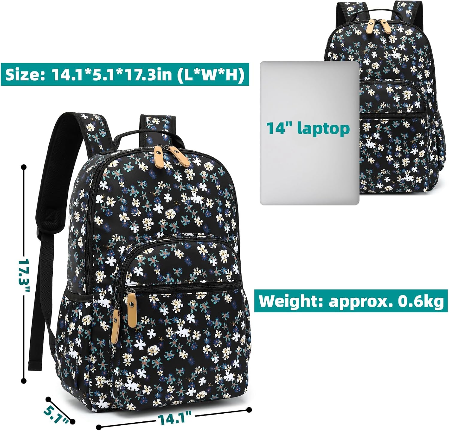 Size: Fashion bag: 11.8 x 16.5 x 6.7 inches (L x H x W). Weight: Backpack: about 0.545kg. Vintage floral design backpack, but the floral design may have slight difference with each bag.