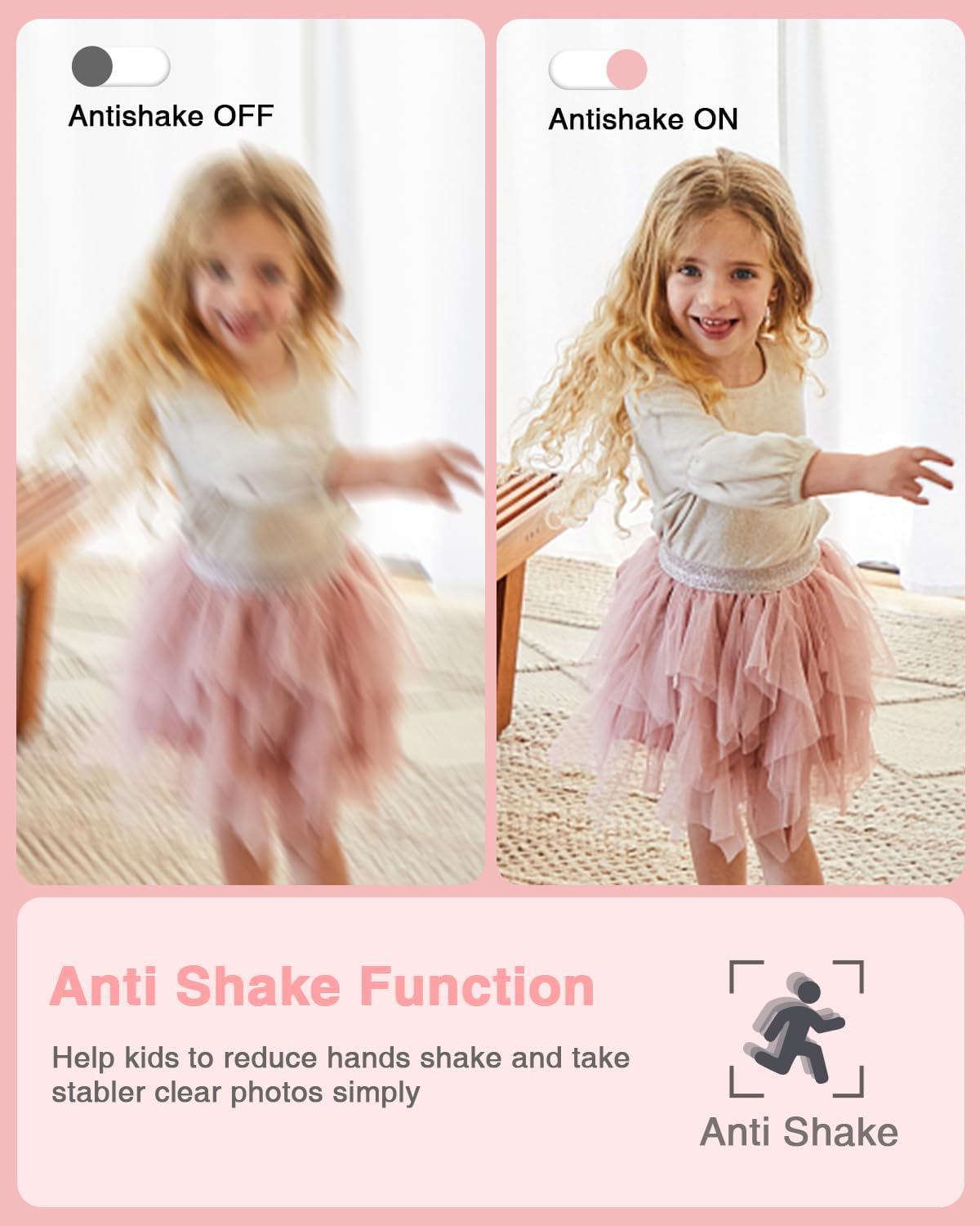 Meaningful Gift: This pink kids digital camera is equipped with high-level CMOS sensor and anti-shake function, which helps to capture vivid and clear 44MP images and record stable and smooth videos with 1080P FHD resolution. It is a meaningful gift camera for Christmas or birthday for kids to cultivate their interest in photography, experience the lovely life and leave funny and unforgettable moments with families or friends.