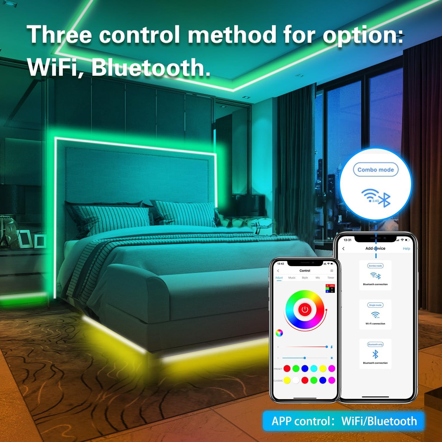 You can control the LED lights wherever you are. The light strips can be controlled by the Bluetooth app.