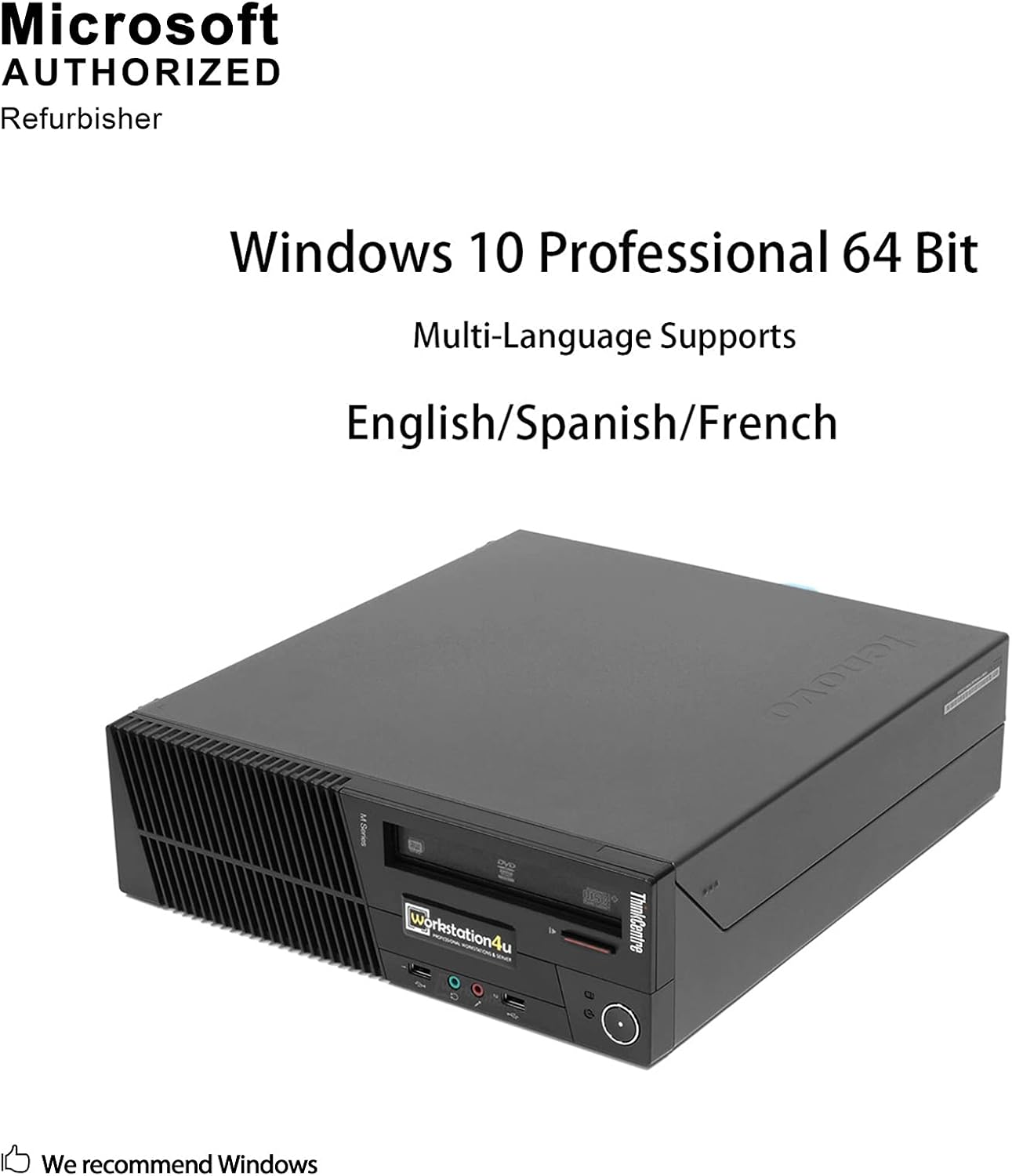 A new installation of the English/French operating system of Microsoft Windows 10 Pro 64 Bit Multi-Language, Bloatware free commonly installed from other manufacturers. As Microsoft's STABLEST operating system to date, Windows 10 will proceed the usefulness of its PC in the coming years.
