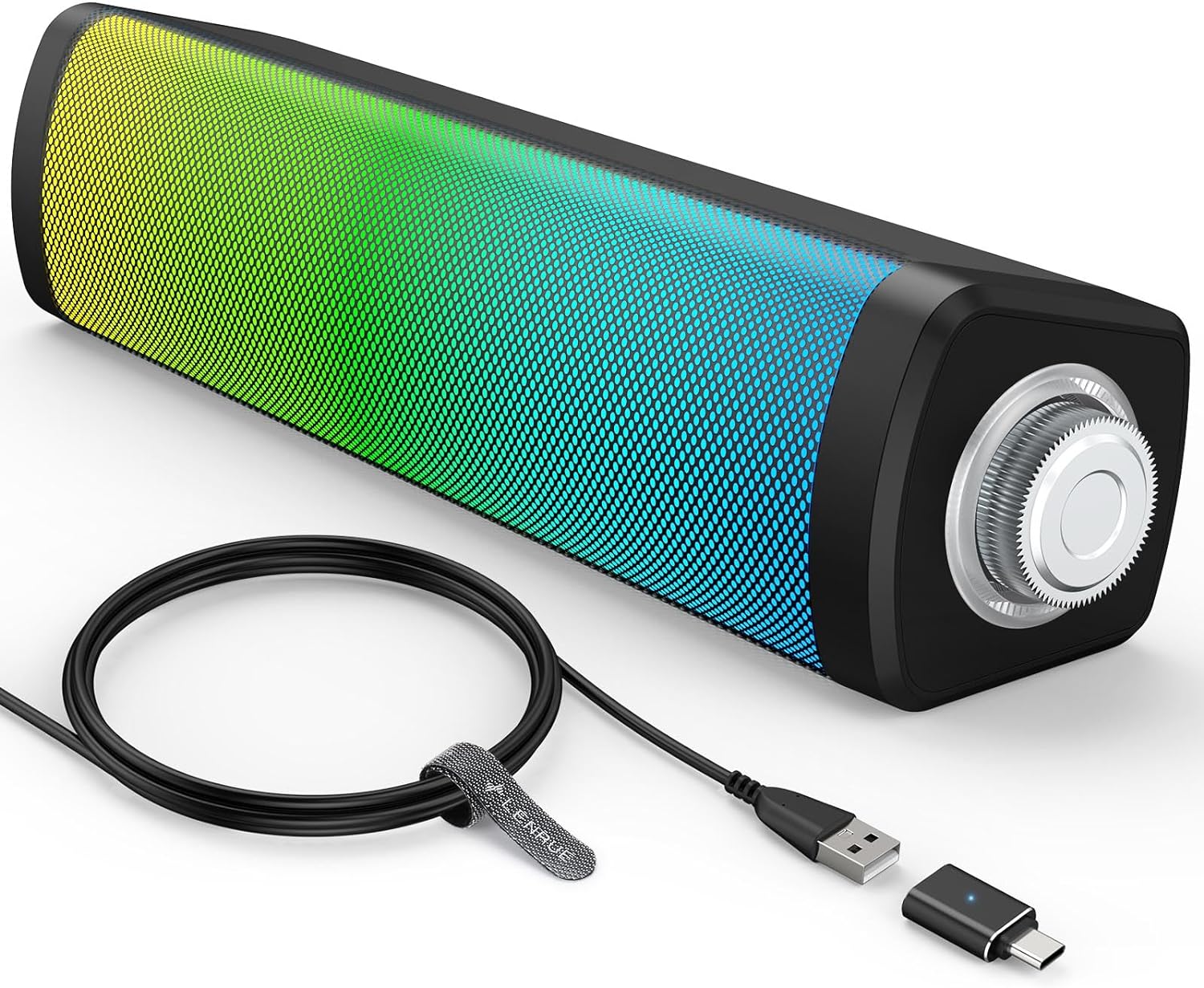 Lenrue computer speakers, portable speaker with USB feeding, knob control, touch color lights, with USB C adapter for portable PC portable computer