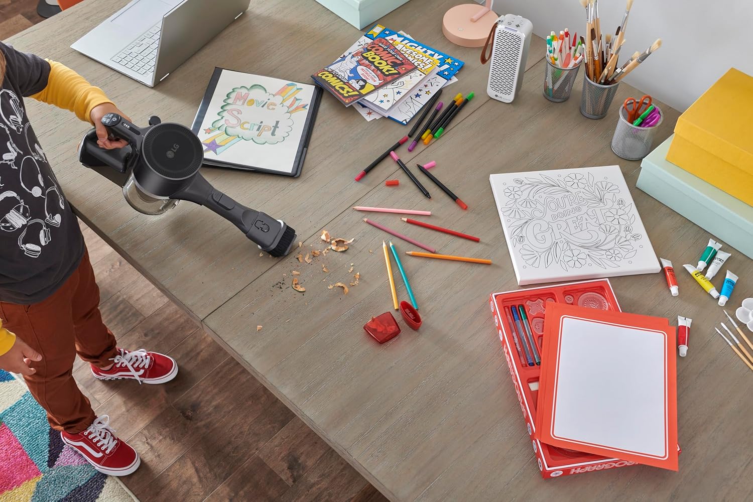 AUTO VACUUM: This LG stick vacuum automatically empties the dust bin when docked to keep built-up debris out of your home, out of the air, and off your hands. An added bonus: You'll enjoy better suction with an empty dust container the next time you clean.