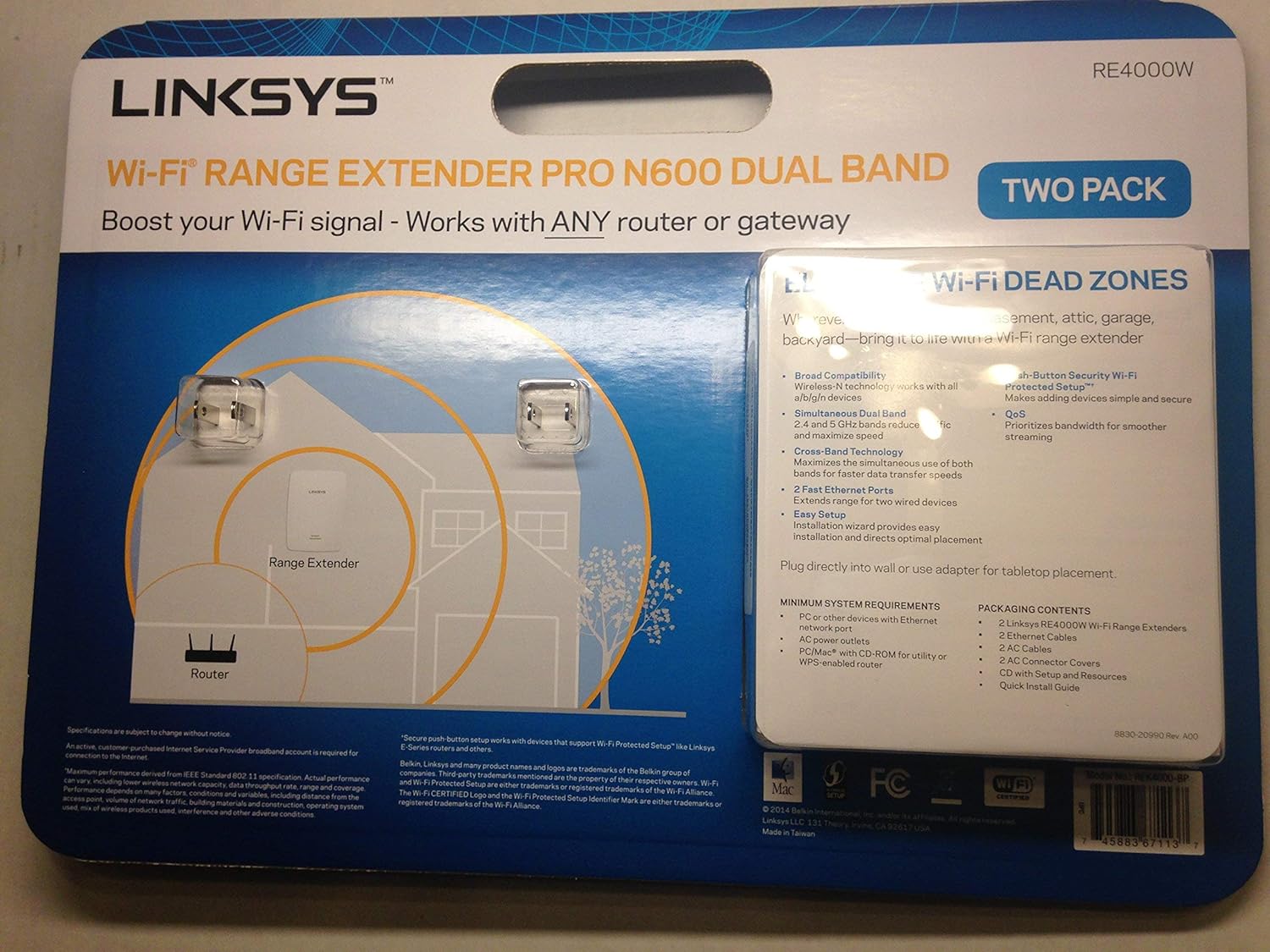 Linksys Wi-Fi Range Extend Pro N600 Dual Band Re4000W Whit …