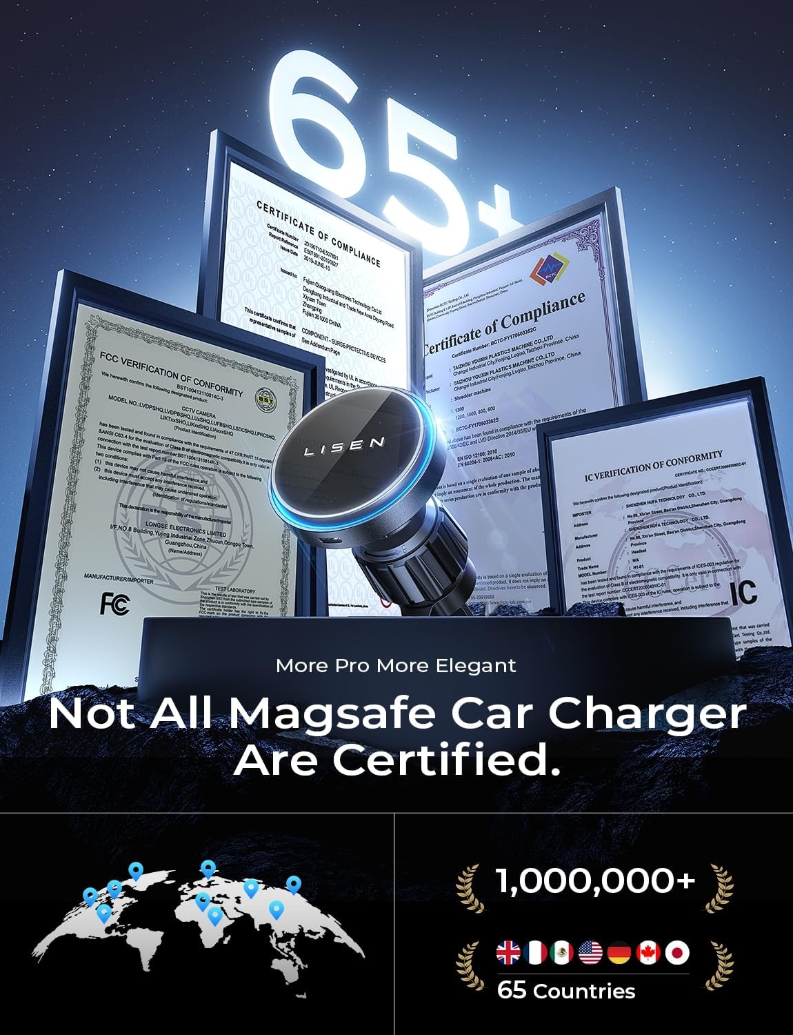 LISEN for Magsafe car charger [20 Strong Magnets]for…