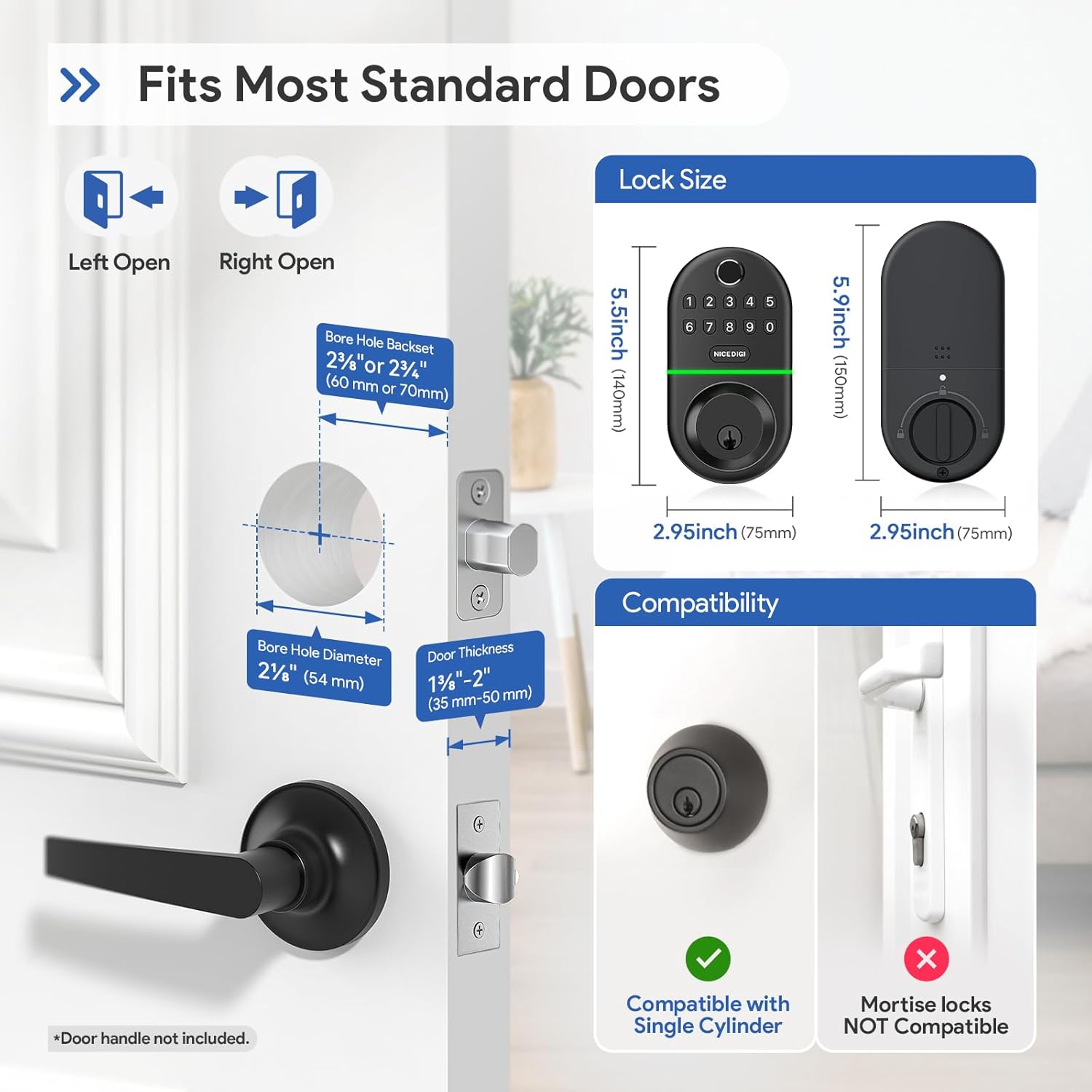 Easy installation: it adapts to 99% of the American front wood doors. Our keyboard lock lock can be installed in minutes using only one screwdriver. No additional drilling is required. It is suitable for left and right -hand doors.