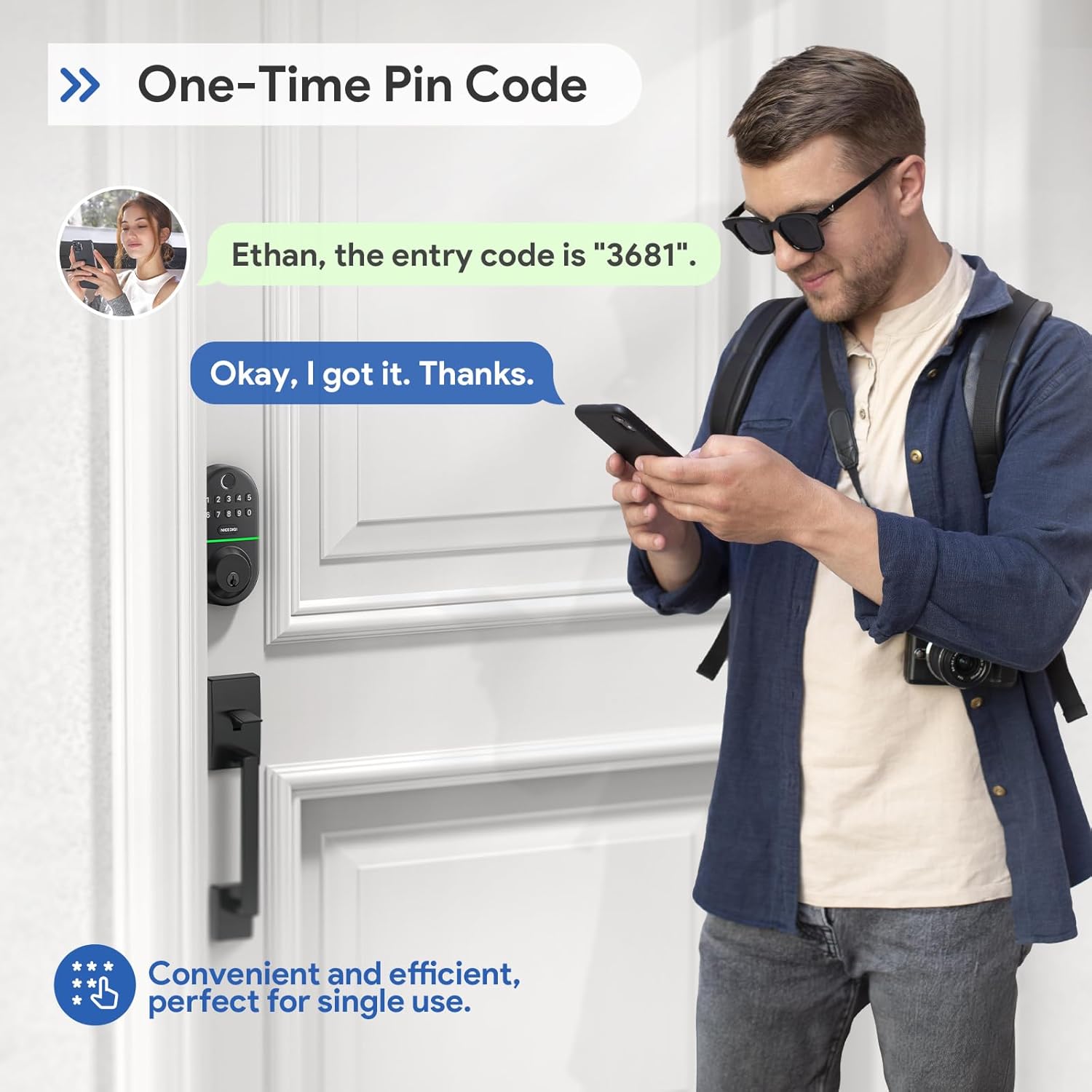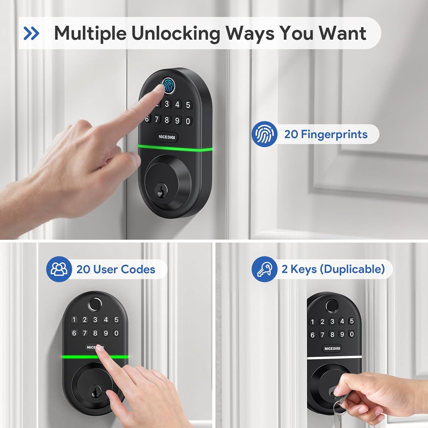 Single access code entry: Create up to 20 permanent codes (4-10 digital) for your family and friends, and generate unique codes for guests. You can also use physical (duplicable) keys to unlock your digital block.