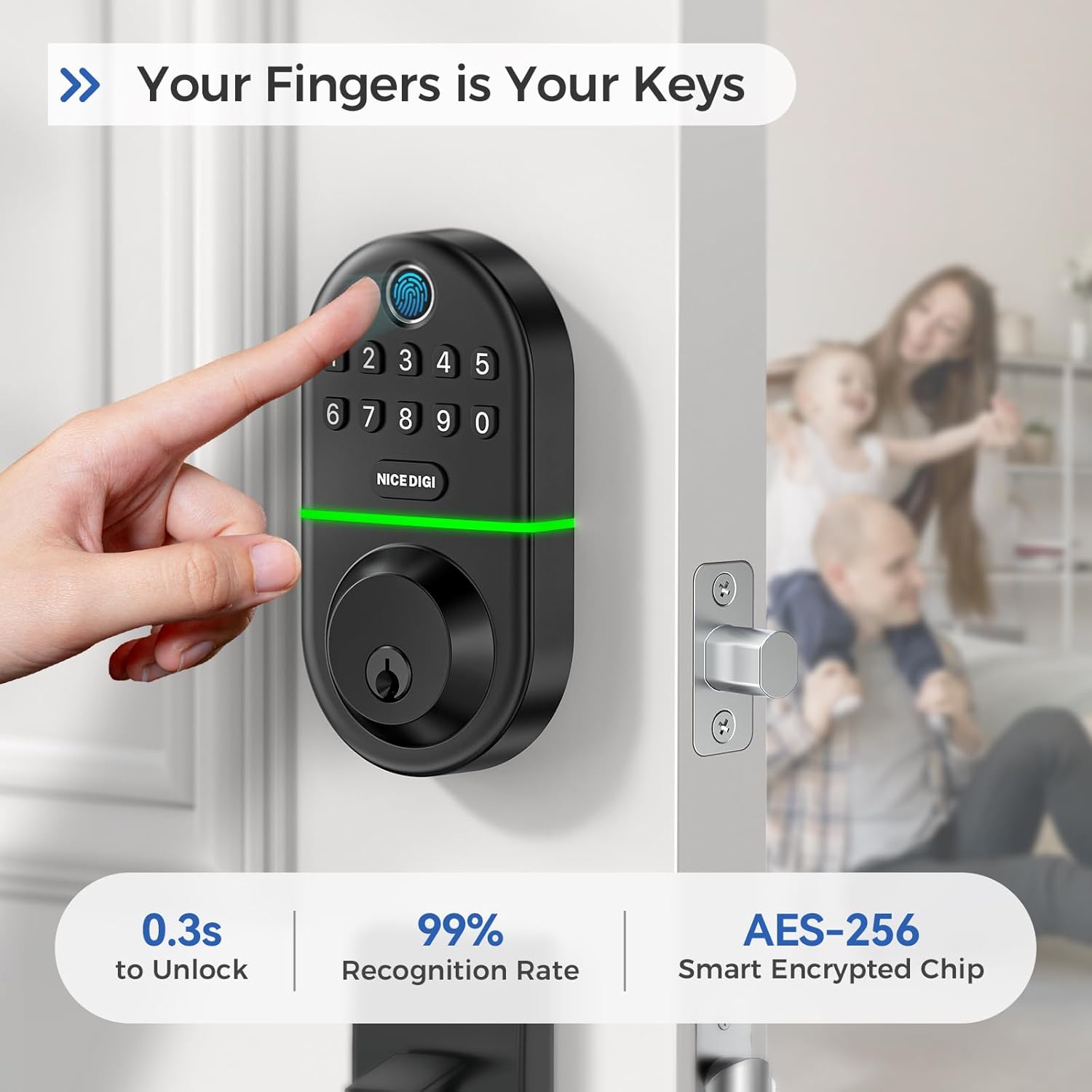 Ensure digital footprint unlock: no keys are needed; Your fingers are the keys. Unlock effortlessly in just 1 second with a recognition of high precision biometric fingerprints with a 98%precision rate.