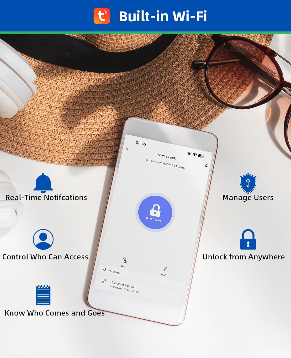 Access to Wi-Fi: Wi-Fi built for remote administration: Connect to Wi-Fi of 2.4GHz for the remote administration of its inner doors. Enjoy convenient access control, real -time notifications and monitoring of events to guarantee home security from anywhere
