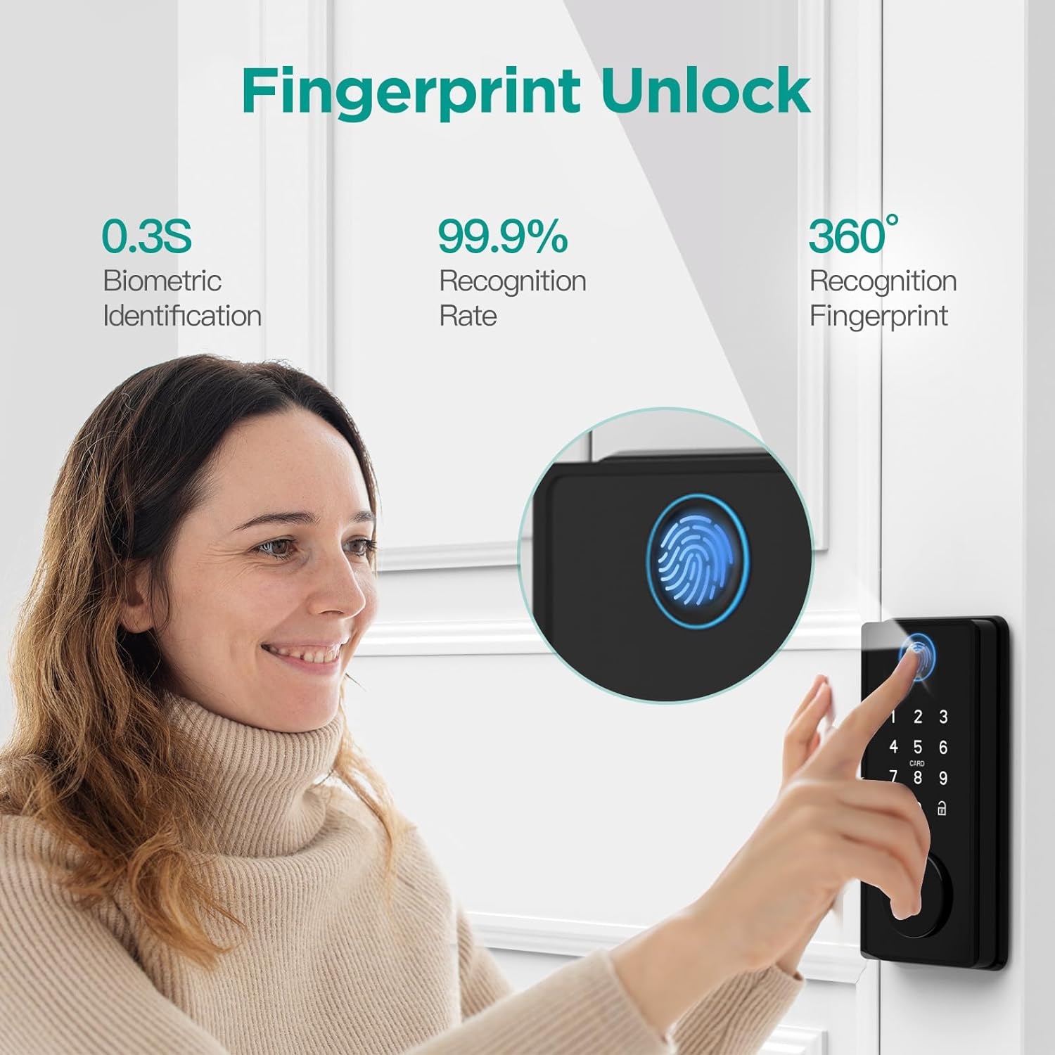 Our digital footprint door lock is easy to unlock. With only 0.3 seconds to recognize your fingerprint, you can unlock your 1S-2S door with a 99.8%accuracy.