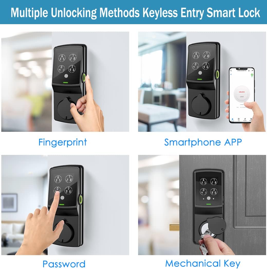 Your Finger is Your Key: The smart lock with fingerprint recognition allows you to quickly access in just 0.3 seconds and open the lock in 0.5 seconds. The second generation 3D biometric fingerprint sensor stores up to 99 fingerprints. Control via the application from anywhere, compatible with Amazon Alexa and Google Assistant for effortless hands-free control, includes a WiFi hub. No monthly fee.