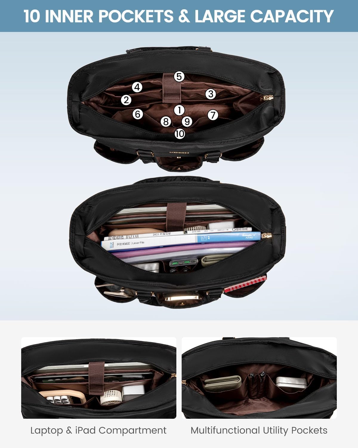 Enhanced Security: The fully enclosed zipper top of the women's laptop tote bag offers maximum security, preventing items from falling out and keeping them dry in the rain. Perfect for both professional and casual settings.