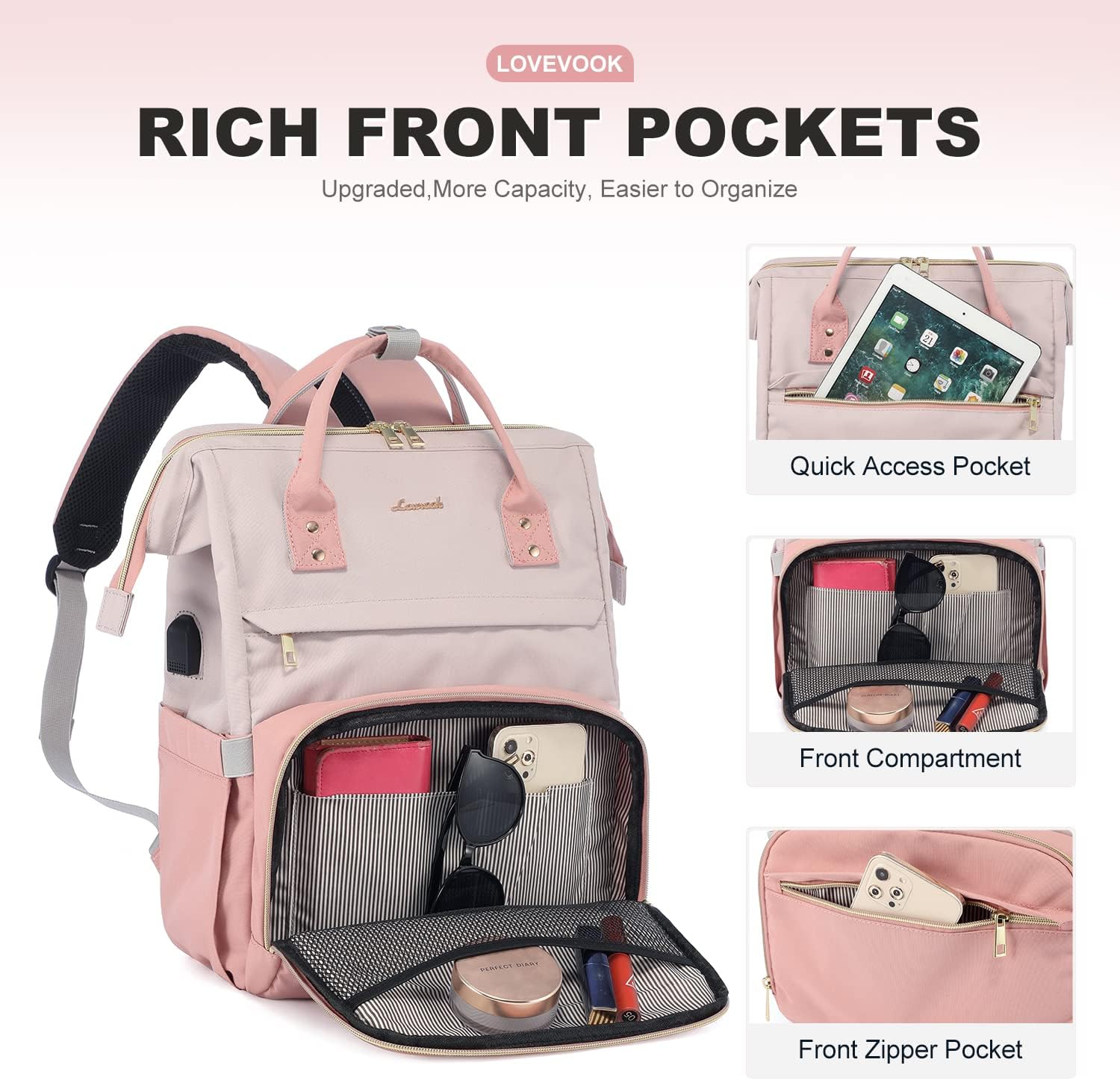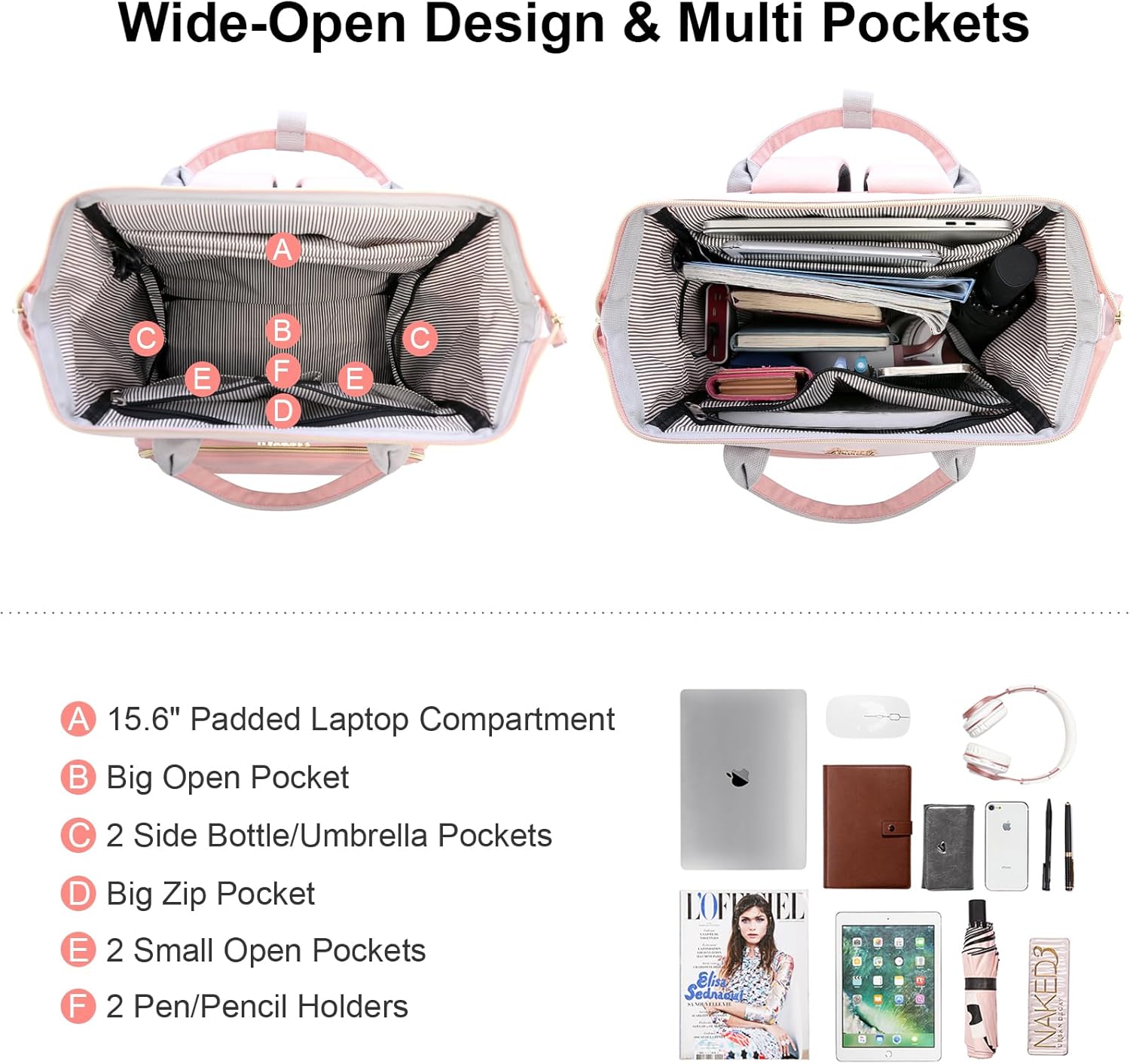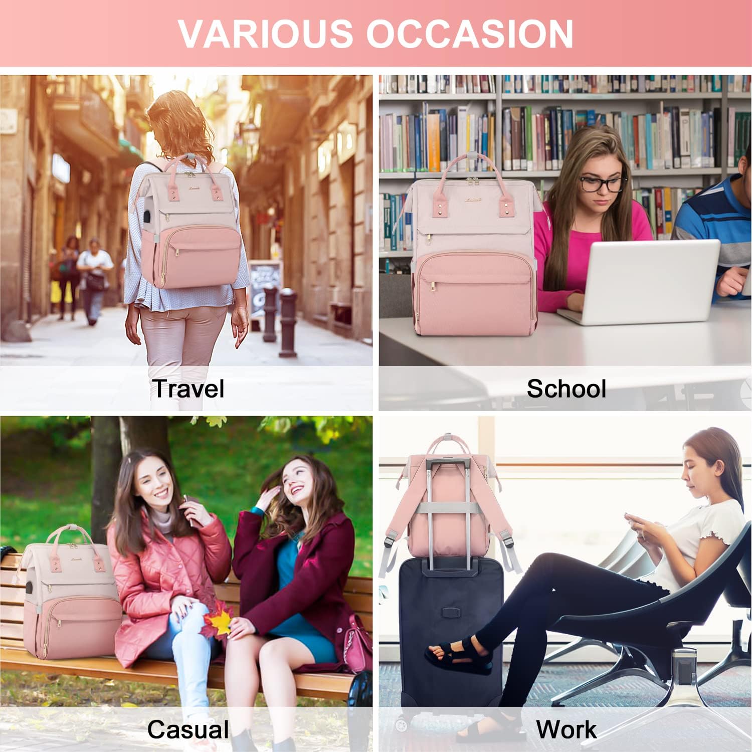 MULTI-POCKET DESIGN: Multiple internal pockets design makes the laptop backpack more organized. This women backpack has enough organization to keep your stuff tidy. This laptop backpack allows you to organize all the things you carry with you clearly.