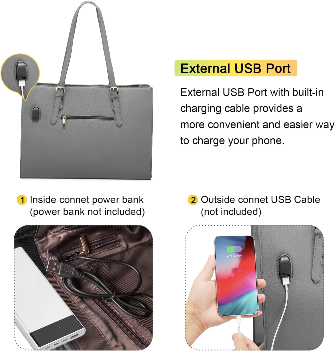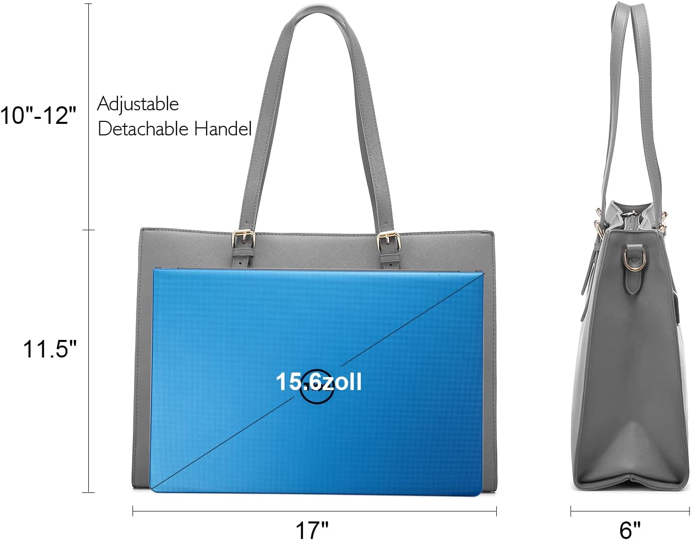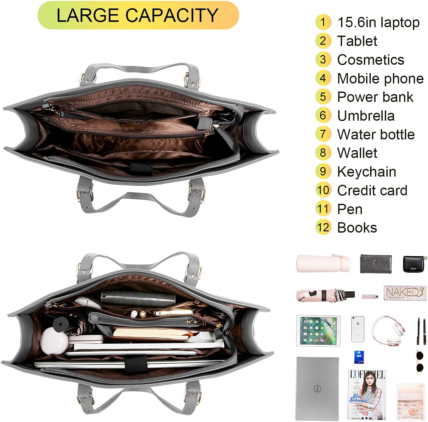 【Spacious and Functional Design】The handbag has a large capacity and multiple pockets, including a padded pocket that fits a 15.6-inch laptop and a separate pocket that fits a 12.9-inch iPad. It also has two interior zipper pockets, pen pockets, etc. 13 pockets in total and a side compartment for extra storage.