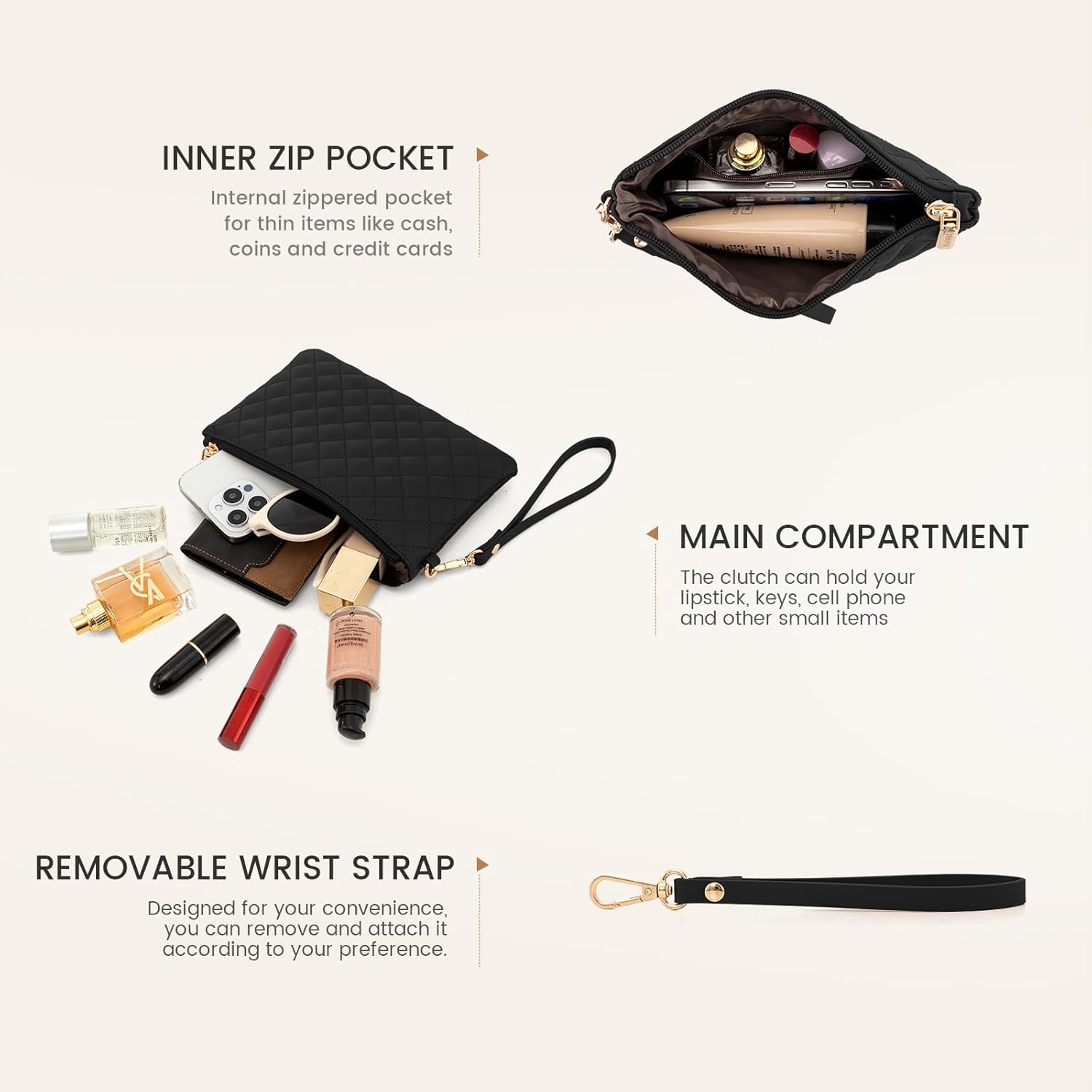 👝 Cutter clutch bag ☛ The clutch bag is compact enough to fit in your hand or slide easily in a larger bag, but spacious enough to support all its essential elements, such as your phone, keys, cards and makeup.