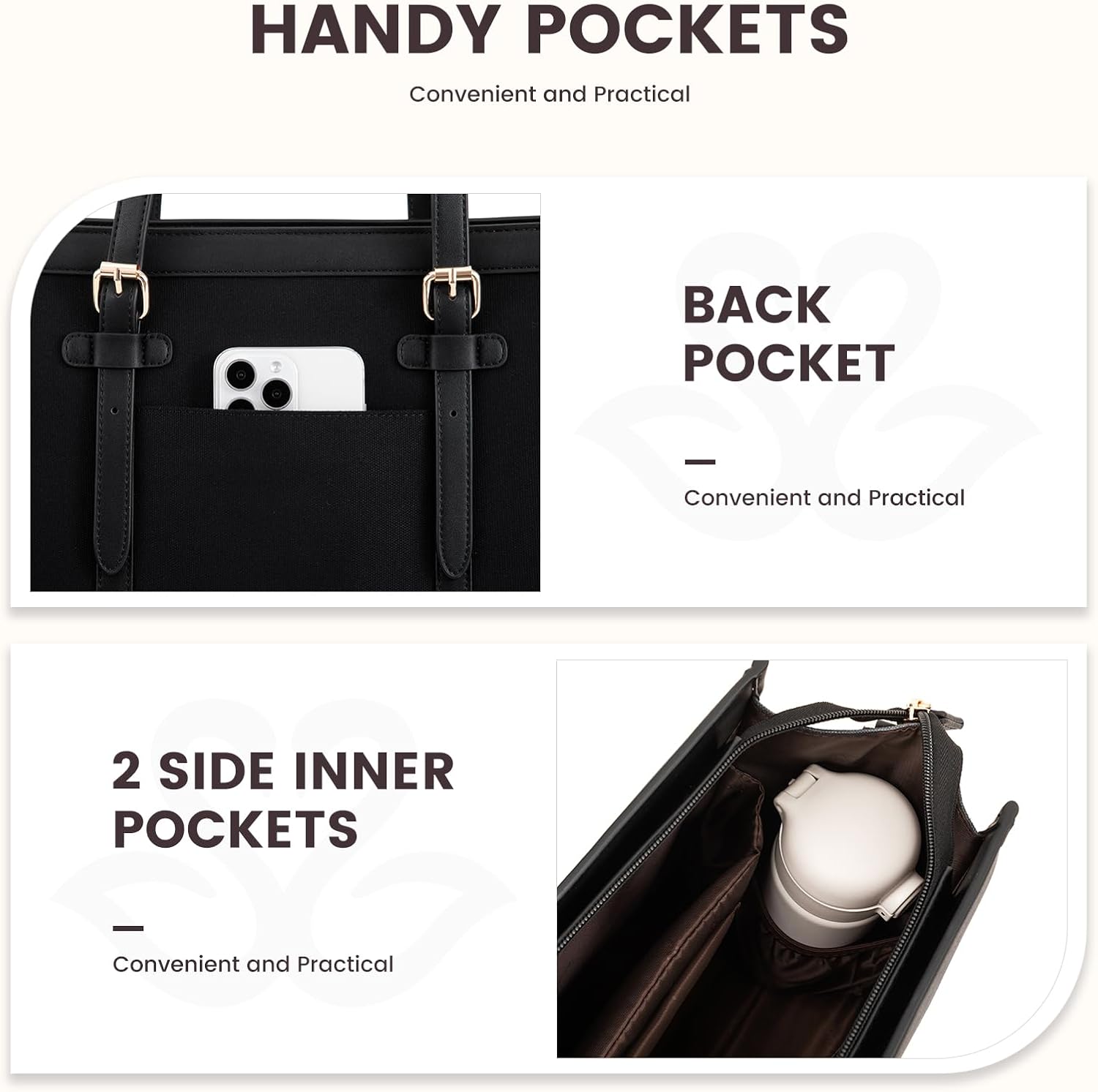 💻 Large capacity compartment and laptop computer ☛ Last computer bag size for women: 16.1 “*6.3″*12.2 “. The dedicated portable computer compartment provides maximum protection for your device. 2 internal pockets, 2 sliding pockets and 1 pocket of areas for small items such as a phone, wallet, composition, passport, etc.