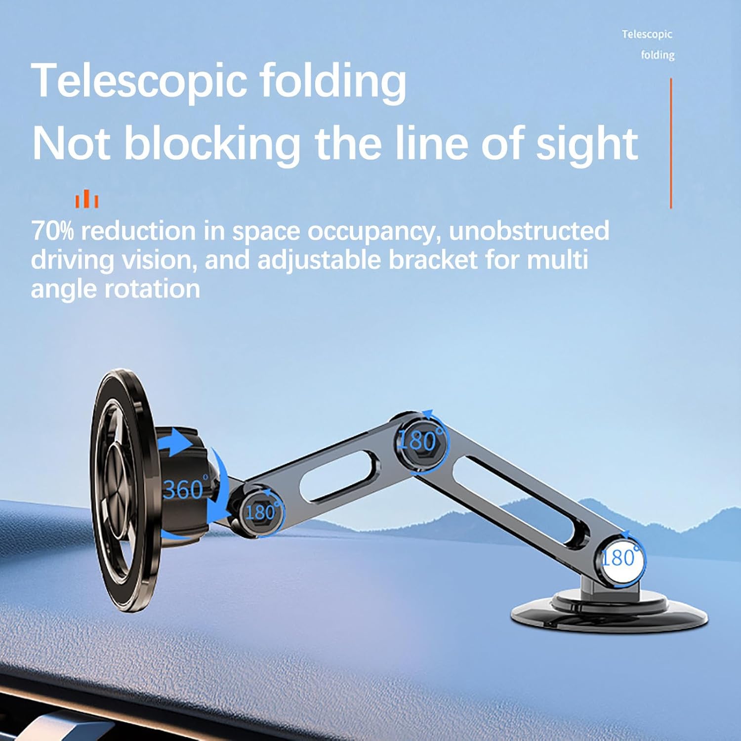 Space-saving magic: Shrink it, fold it, and unleash your unhindered driving superpowers! The stand rotates, adjusts, and lets you keep your eyes on the target!